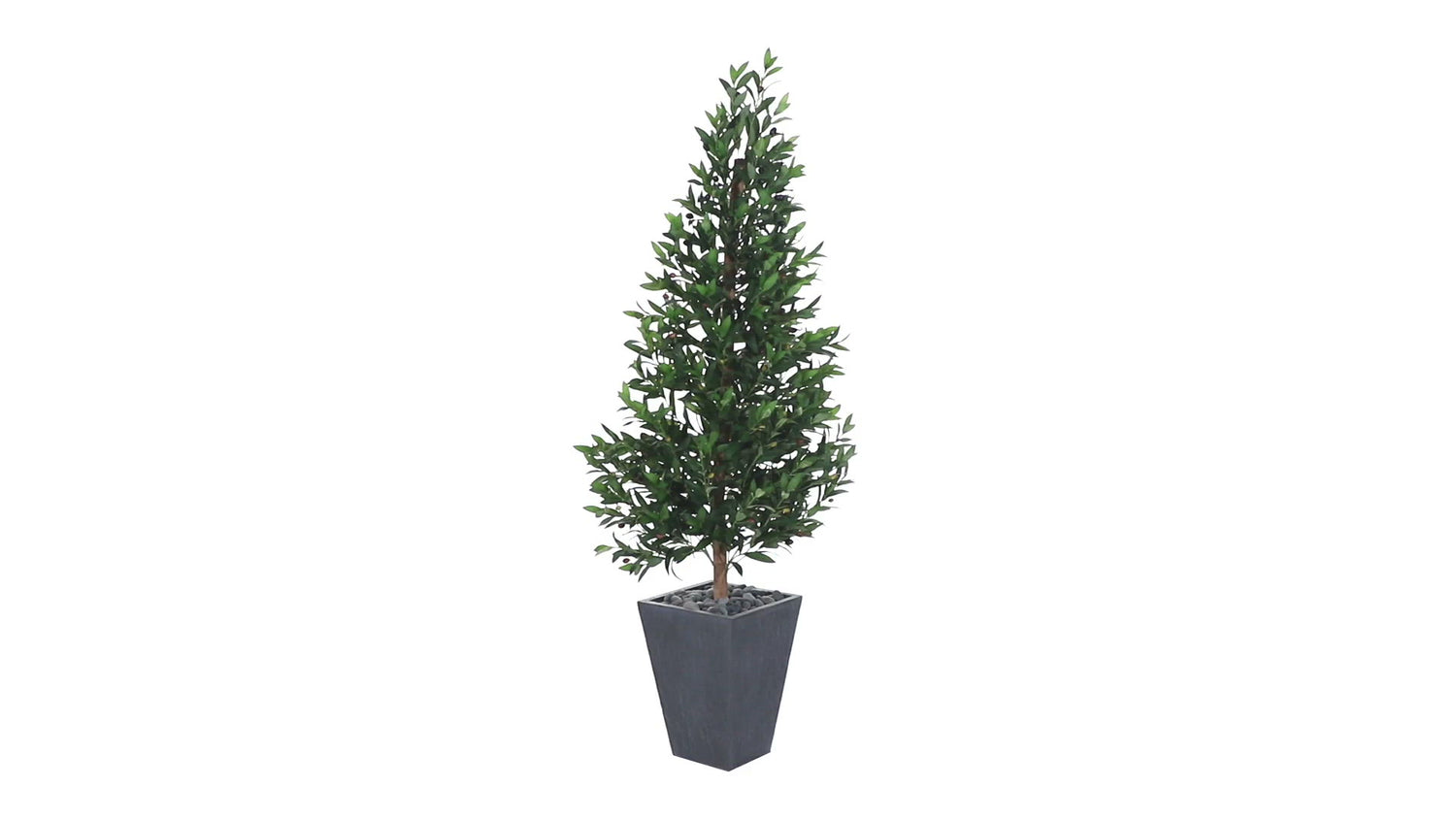 For a natural greeting that won't fade or wilt, place this artificial outdoor safe 67” olive cone topiary tree on either side of your front door. Coming in a slate planter, this faux tree features a thin trunk that gives way to an abundant amount of small, lifelike leaves that are a natural green color. This would compliment a black welcome mat well.