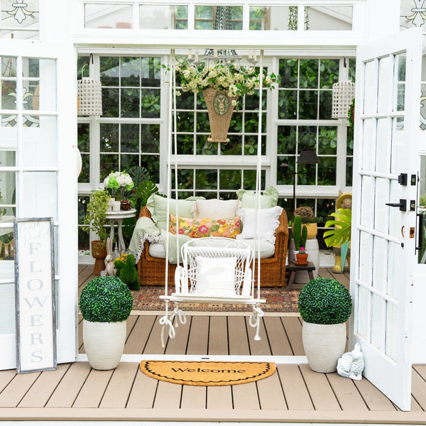 Your living space extends beyond your front door, so don’t forget the porch. Adding artificial greenery outside creates a welcoming transition into your home.