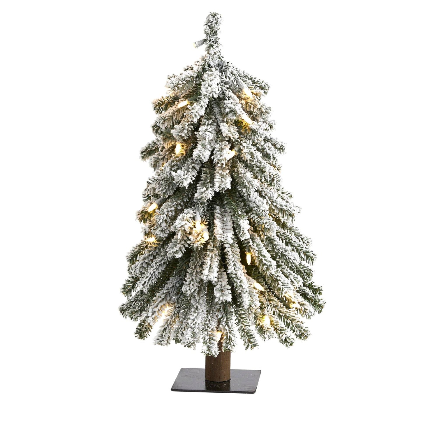 Set up the ultimate Christmas scene even in a limited space environment with the help of this flocked artificial Christmas tree. Completely maintenance-free, this winter-inspired artificial Christmas tree boasts a slim and slender silhouette made up of 111 easy-to-bend branches to showcase all your favorite holiday ornaments and comes beautifully flocked in a winter coating of faux snow to evoke the impression of freshly fallen snow. Arriving pre-strung with 35 clear LED lights to eliminate unsightly tangles and carefully stabilized on a natural trunk and metal stand, this snowy 2’ artificial Christmas tree will undoubtedly transform your holiday decor, year after year.