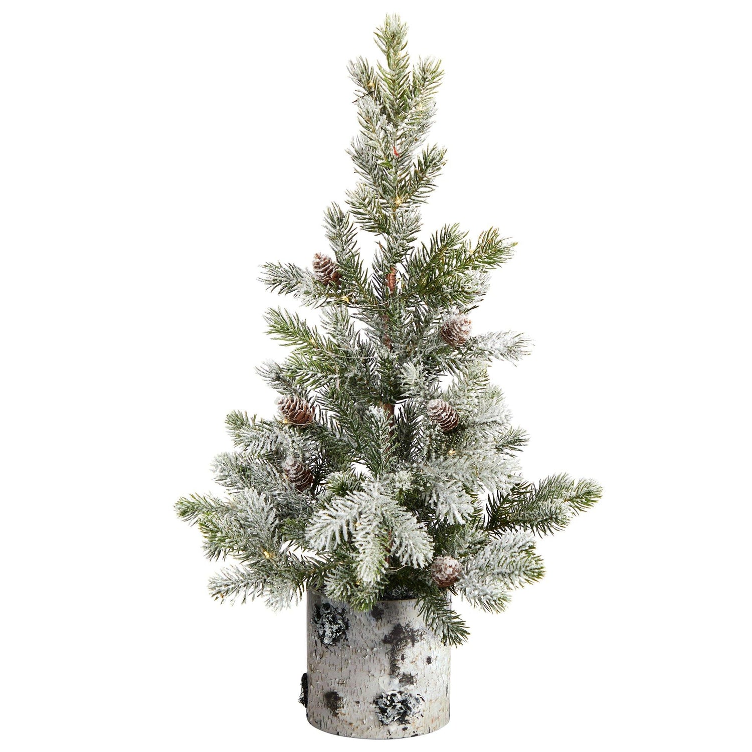 Evoke hints of the season no matter the space restriction with the help of this flocked artificial Christmas tree. Easy to set up and entirely maintenance-free, this space saving little tree features branch tips for holding your decorative ornaments, fully flocked in thick coating of faux snow to create the ultimate winter-escape setting. Stabilized on a decorative vase, this 24" flocked artificial Christmas tree would undoubtedly make a stunning addition to winter decor scheme. Perfect for a kids' room, desktop or mantel