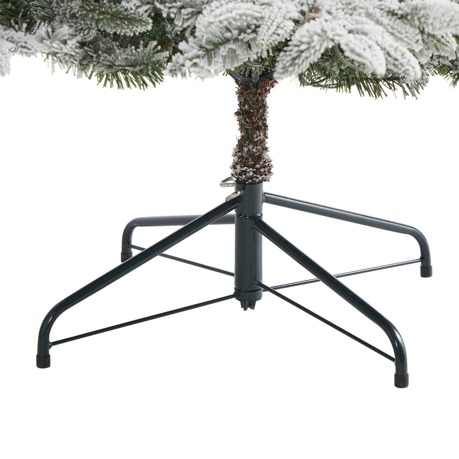 Create your own White Christmas this holiday season with the help of this flocked artificial Christmas tree! Completely maintenance-free, this winter-inspired fake Christmas tree boasts various tiers of soft looking foliage made up of 949 easy-to-bend branch tips for accenting with your own personalized ornaments and holiday accents and finished with a light dusting of faux snow to evoke a winter setting. Arriving pre-strung with 450 LED lights to eliminate tangles and carefully stabilized on a metal stand, this enchanting 7.5’ tall frosted artificial Christmas tree will not only make holiday decorating a breeze but ensure your home is always holiday-dressed for years to come.