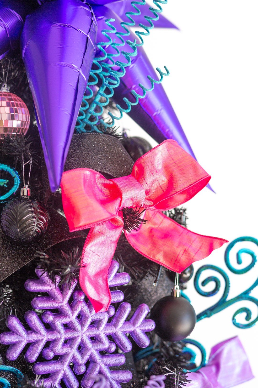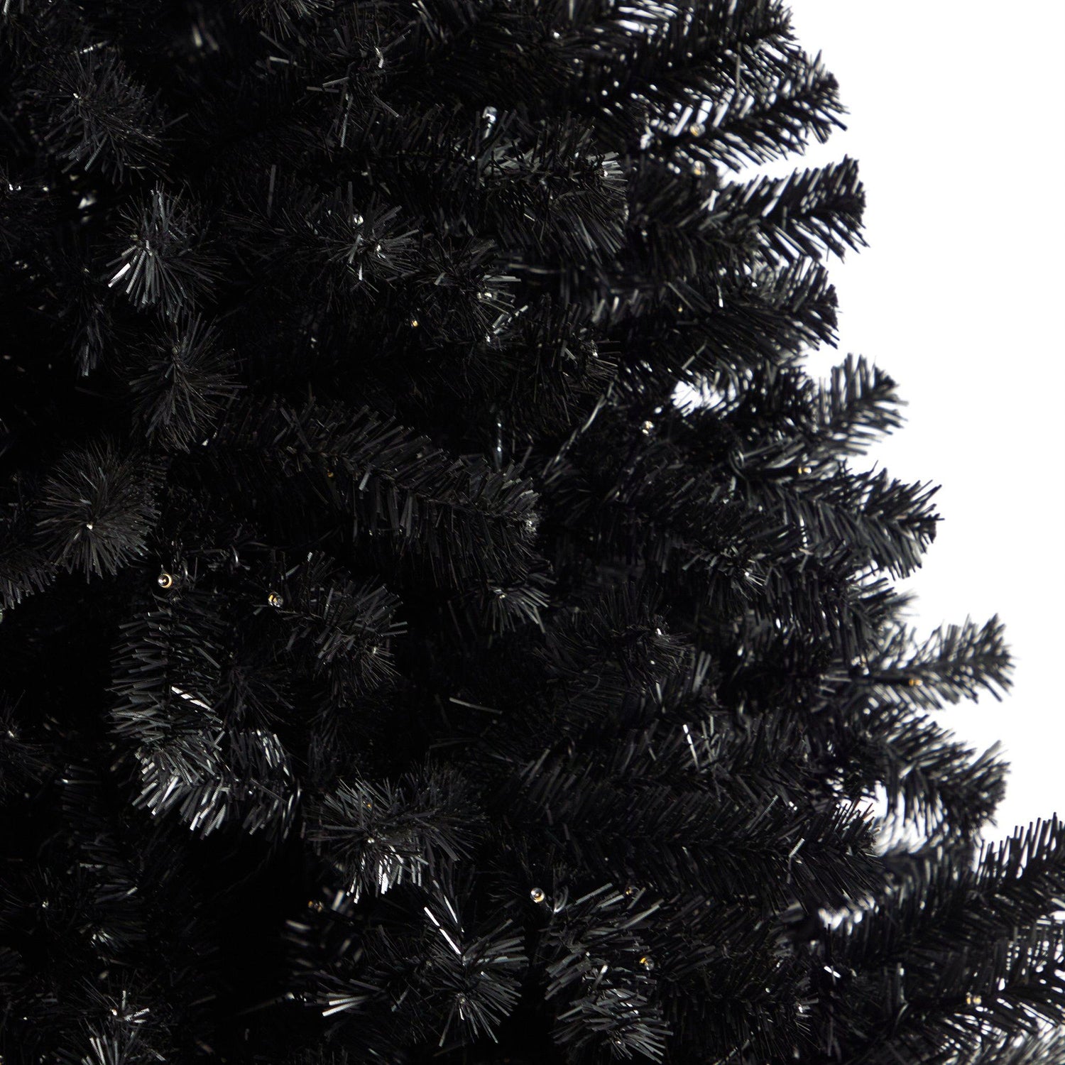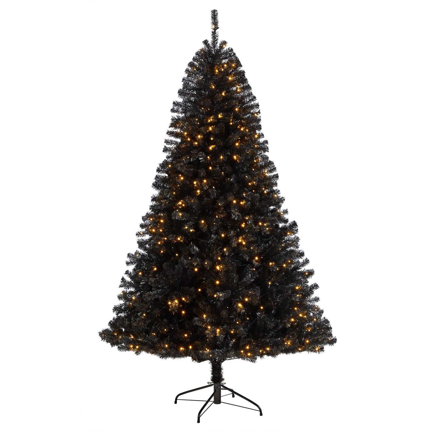 Crave a gothic Christmas or an upscale dazzling holiday season? Transform your Christmas into a unique event with this Black Artificial Christmas Tree. Inspired by nature, 1428 needles display a lush silhouette, dress this faux Christmas tree in an array of ornaments for a sleek look. Save time and money with the 500 LED lights, more energy-efficient. Standing 7' add to any compact area. Why wait till Christmas? Display during Halloween, as well. Is stabilized in a black stand.