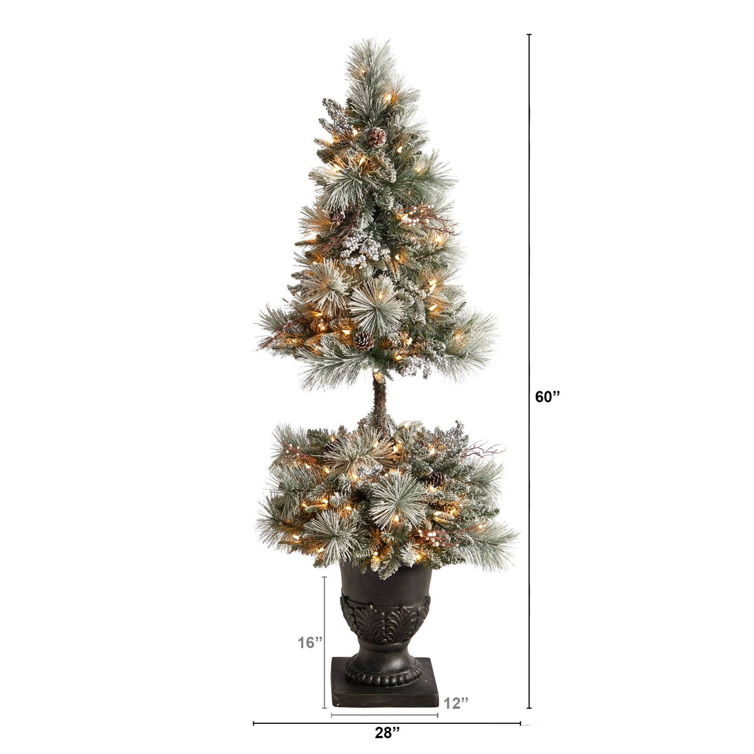 5’ Flocked Porch Christmas Tree with 100 LED Lights and 186 Bendable Branches in Decorative Urn
