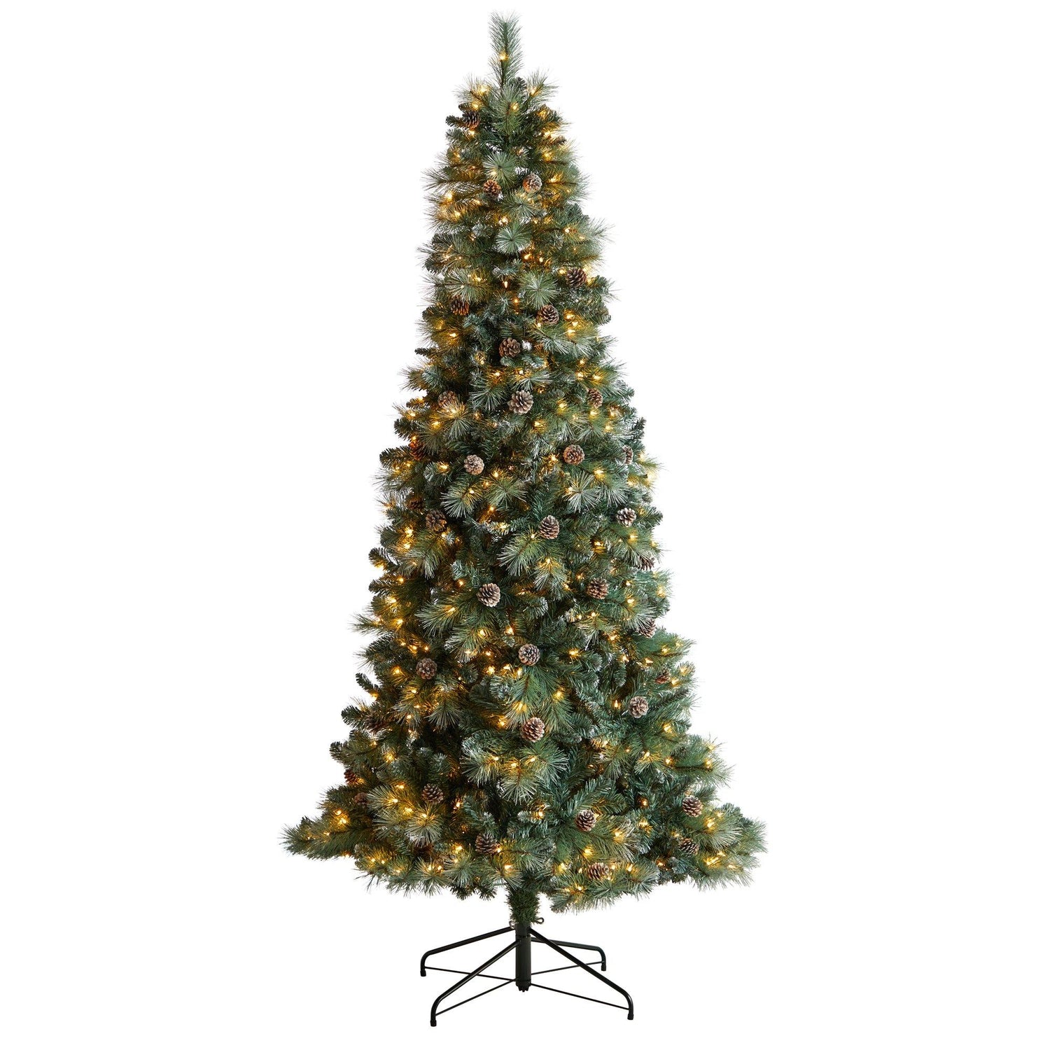 Bring the Canadian forest's rustic charm with the help of this Frosted Tip British Columbia Mountain Pine Artificial Tree. A nod to nature, this realistic lifelike tree is accented with faux pinecones throughout and has the appearance of fresh, soft snow on the tips. The 1112 easy-to-bend branches allow you to shape and fluff as you like while the 500 clear lights create a warm, candlelight glow – saving you time and money. Standing at 8' from a metal stand (included in height), let it snow in any spaces.