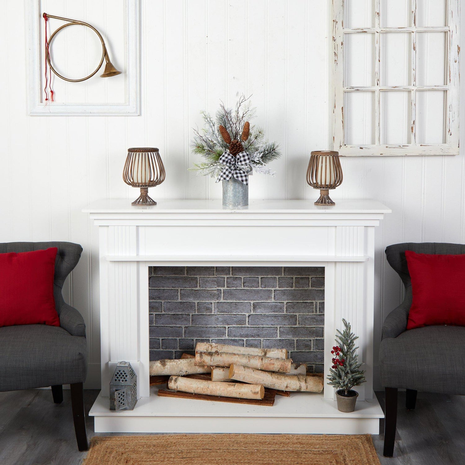 The Christmas birch tree is synonyms with a Christmas wonderland scene. You can now instill the essence of the season with the delicate, soft hued, flocked leaves that are accented by pinecones. A black and white bow brings the look together. Standing 20" from a tin vase, house in any table in need of Christmas cheer. Perfect for a tablespace, mantel or entry way.