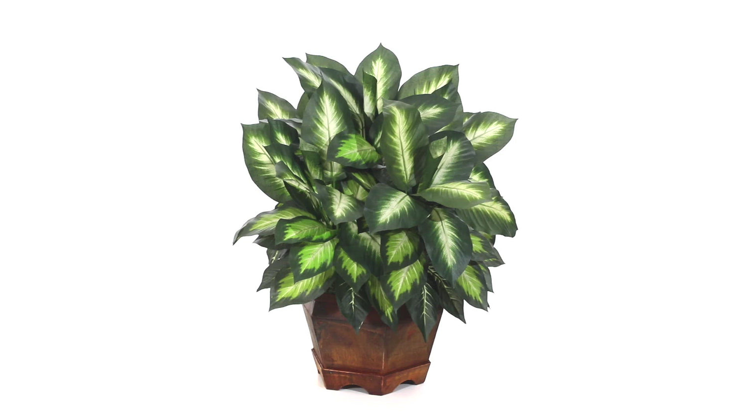 Hugging the ground at 24 inches high, the Golden Deiffenbachia with Large Hexagon Base is a delightful collection of color variation. Notice the dark emerald hues mixed with lighter colors to create a rich tapestry of patterns as they spread out from the center. Just awesome (we can’t help it – that’s the word that springs to mind!) Arranged in a large hexagon pot, this evergreen, never-worry arrangement is sure to adorn any living area with a touch of nature’s beauty.