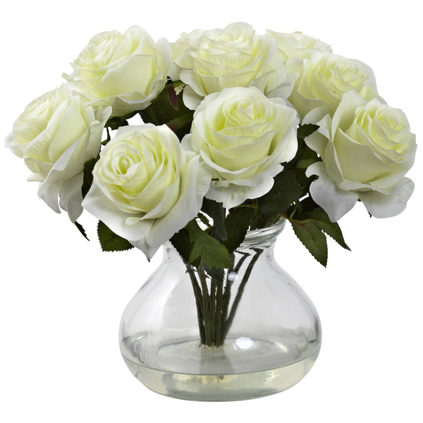 Nothing says “love” quite like a rose in full bloom. And this stunning recreation captures a bouquet of roses, with lush, pouty blooms that sit regally on a backdrop of green leaves. This magnificent arrangement is then housed in a decorative glass vase, complete with Liquid Illusion faux water. There is no substitute for a rose, and there’s no better way to capture that feeling than with this arrangement.