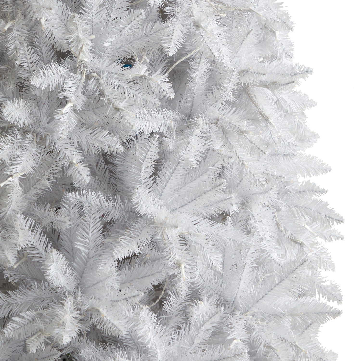 Are you dreaming of a white Christmas? Fulfill all your dreams with this white artificial Christmas tree. Inspired by nature, this tree has a slim silhouette that mimics its real counterparts' natural foliage and texture. With 3235 bendable branches, you can easily display all your favorite ornaments. Save time and money with the pre-strung 1100 warm LED lights. Standing 12' from a metal stand, curate in any area. Perfect for a family room, living room, or home office.