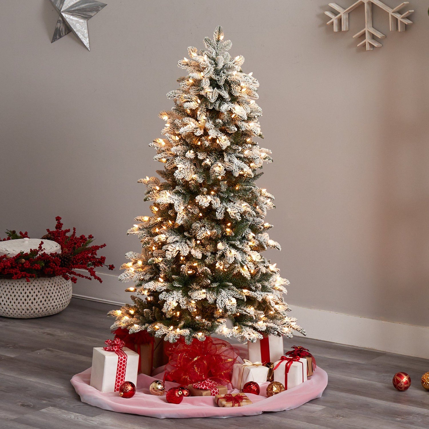 Create a winter-inspired Christmas scene without the hassle of upkeep or maintenance with the help of this flocked artificial Christmas tree. Perfect for tight, narrow spaces because of its slim silhouette, it boasts evergreen foliage made up of 1247 easy-to-bend branch tips for showcasing your favorite holiday ornaments- all fully flocked with faux snow to create a Pinteresque Christmas. Arriving pre-strung with 350 warm white lights to eliminate tangles and carefully stabilized on a metal stand, this flocked 5’ tall artificial Christmas tree will not only make decorating a breeze but ensure your home is holiday-ready for years to come.