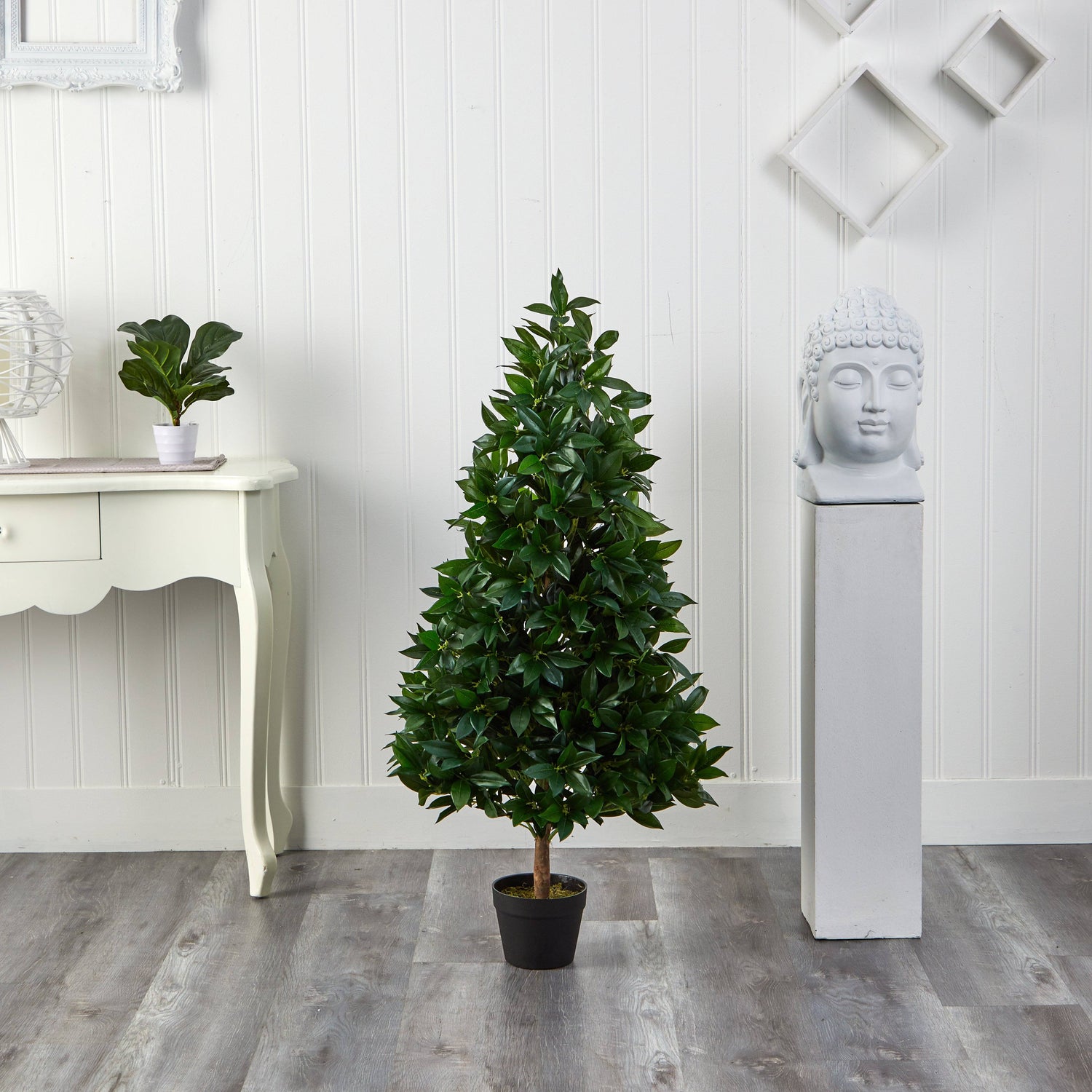 This bay tree looks really nice on our upper deck - even the cat thinks it's real! I've bought several plants (indoor and outdoor) from Nearly Natural, and been very pleased with all of them. I'm going to get 2 more Bay trees and space them out on the deck.