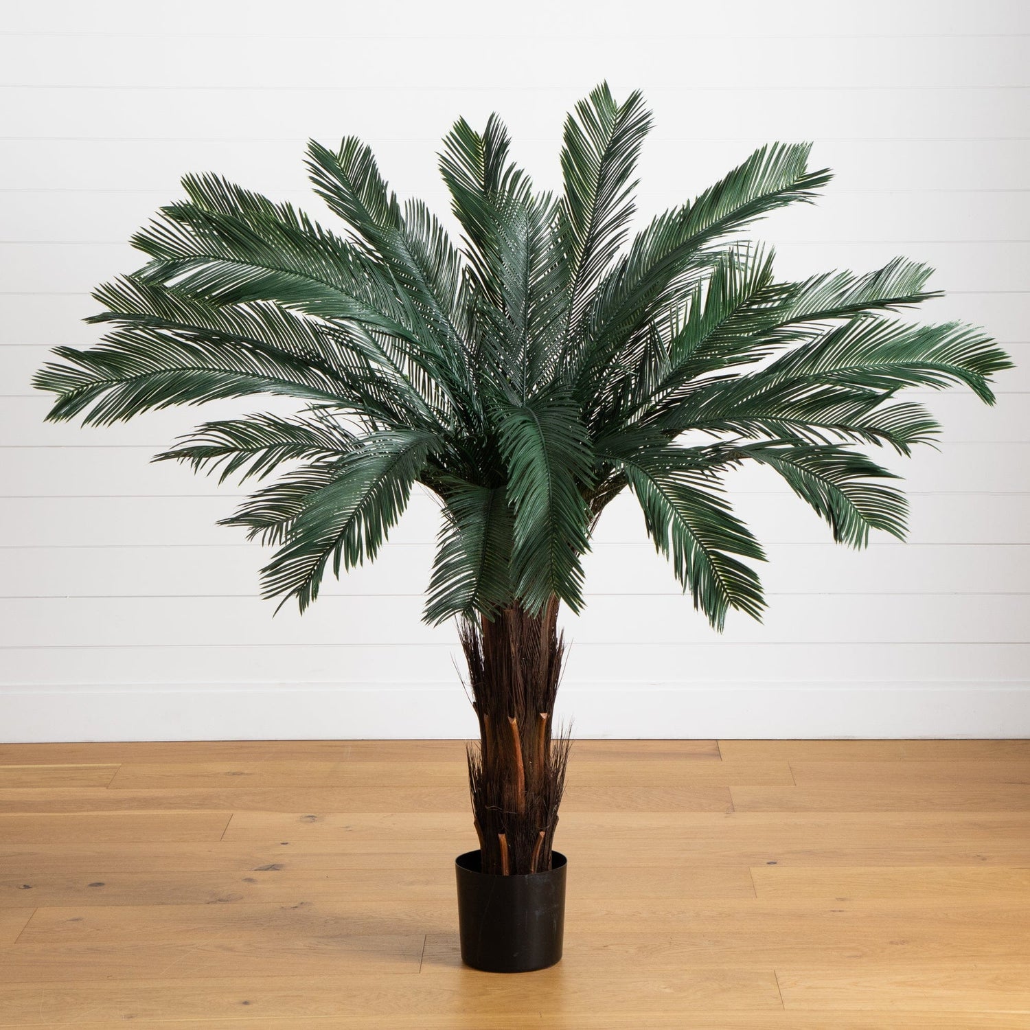 Here's a tropical / jungle tree that looks so real, you'll be reaching for your machete to get through (we're kidding - put the machete down!) This Cycas tree stands 5 feet in height, and is it ever pretty. With a beautiful trunk that explodes into green, leafy fronds, this is an ideal home or office decoration. Plus, it's weather and UV resistant, making it a perfect "indoor / outdoor" decorating option. Makes a fine gift, too.