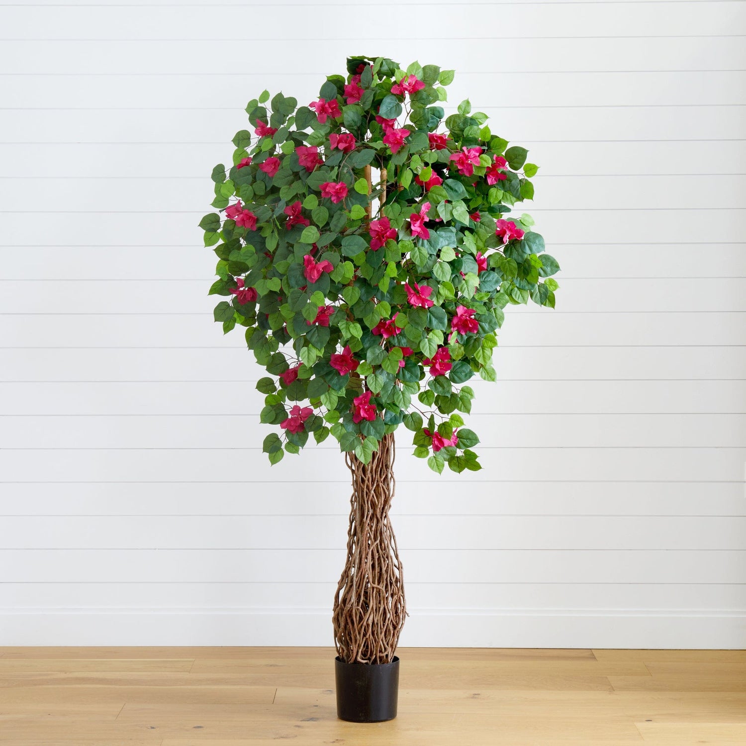 Bursting with color, this multi-vine Bougainvillea Tree will become the focal point of any room it finds itself in. The base of the tree commands attention, with its intricate array of vines that twist skyward. But it’s the delicate blooms that end up “wowing” everyone – soft blooms burst forth from a backdrop made of 990 lush, green leaves. Proudly standing 6’ high, this exceptional tree makes the perfect gift anytime of the year.