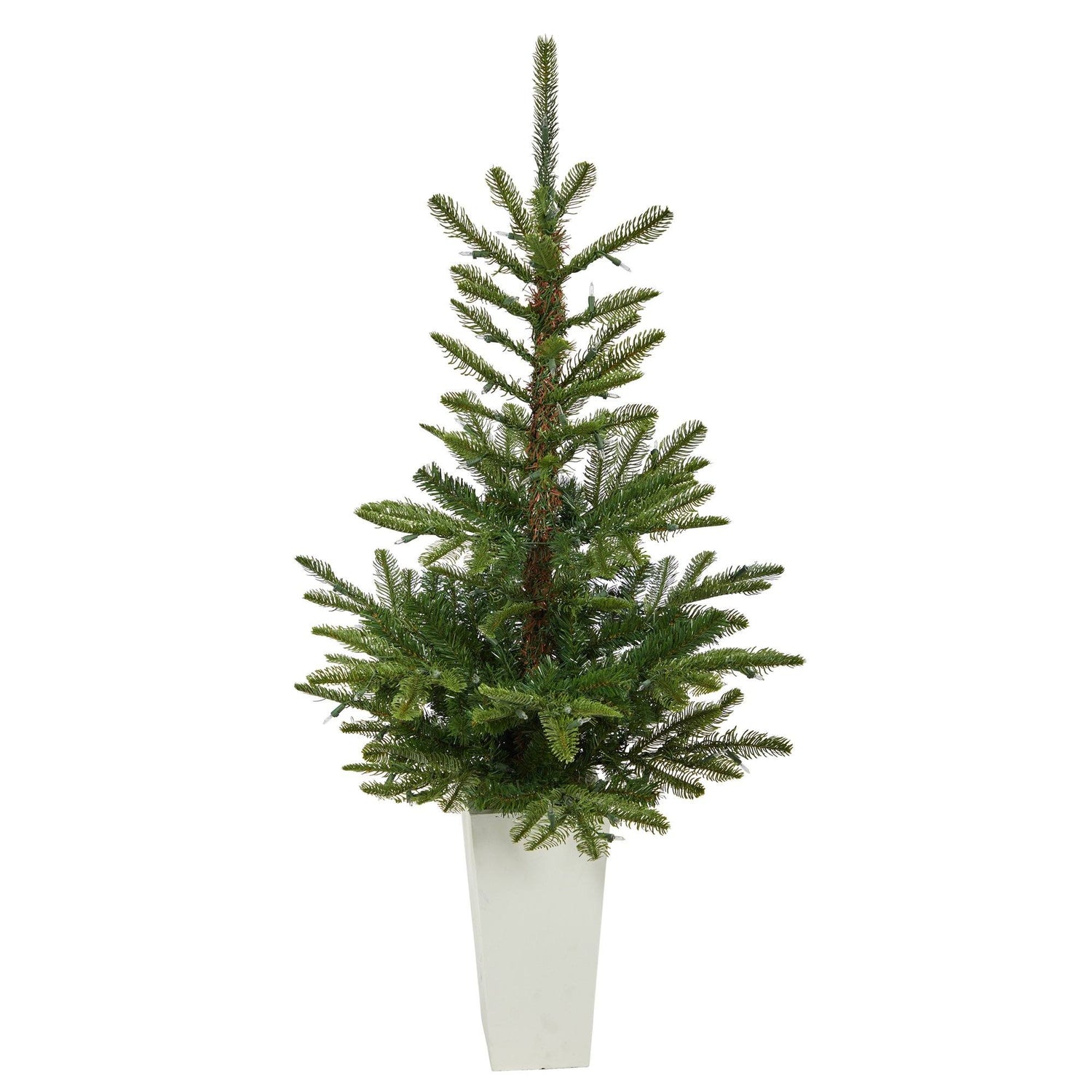 Bring the outdoors in, literally, with this rustic, natural looking, Layered Washington Spruce Artificial Christmas Tree. Sparse by design with spacious gaps that allow you to showcase your favorite ornaments on the 189 easy-to-bend branches, this Christmas tree gets a bit fluffier on the bottom. Inspired by nature and designed by our leading interior decorators your tree arrives pre-strung with 100 clear LED lights – saving you time and money. Standing at 4.5’ from a white planter(included in height), display in compact spaces that need some extra Christmas love. Maybe kids’ room, foyer or next to the mantel.