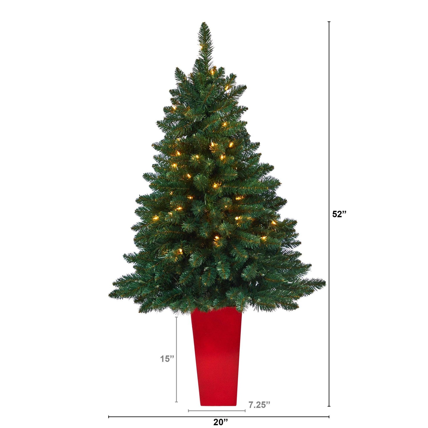 Rock around this West Virginia Mountain Pine Artificial Christmas Tree for a magical Xmas. A robust silhouette – that mimics the foliage and texture of evergreens – with 322 upward sloping, easy-to-bend branches, can house a symphony of holiday ornaments and decorations. Arriving pre-strung with 100 clear lights to eliminate tangles, set any home aglow in harmony. Housed in a tower planter, this artificial Christmas tree is 52" high and perfect to display in compact spaces - such as, dorms, kids’ rooms, or lonely corners.
