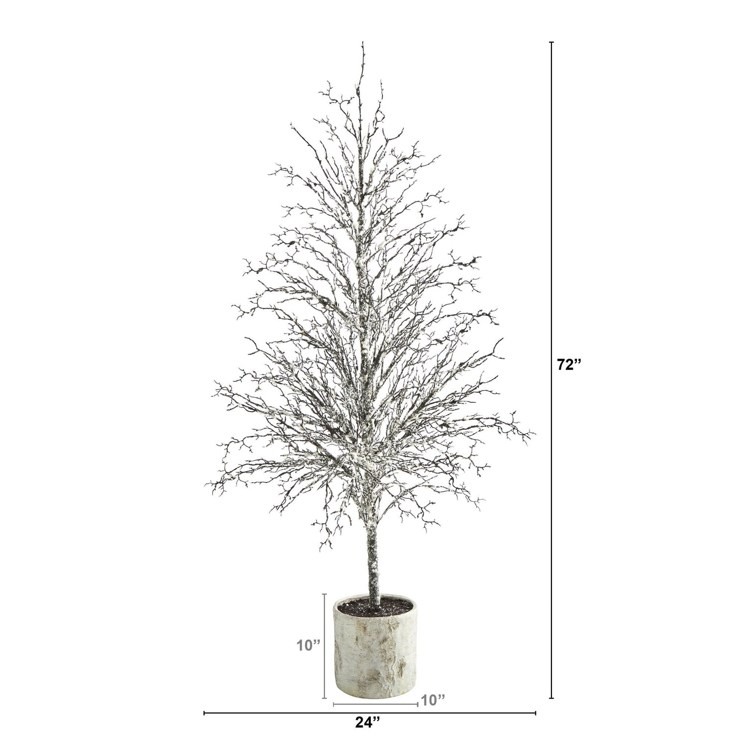 Create your own “Charlie Brown Christmas” with the help of this twig-like artificial Christmas tree. Sparse by design, this timid Christmas tree boasts slender, bendable branches for easy and effortless decorating and finished with a frosting of faux snow to evoke a winter wonderland setting. Standing 6’ tall and stabilized in a decorative planter, this artificial Christmas tree would undoubtedly make a stunning addition to any winter decor scheme.