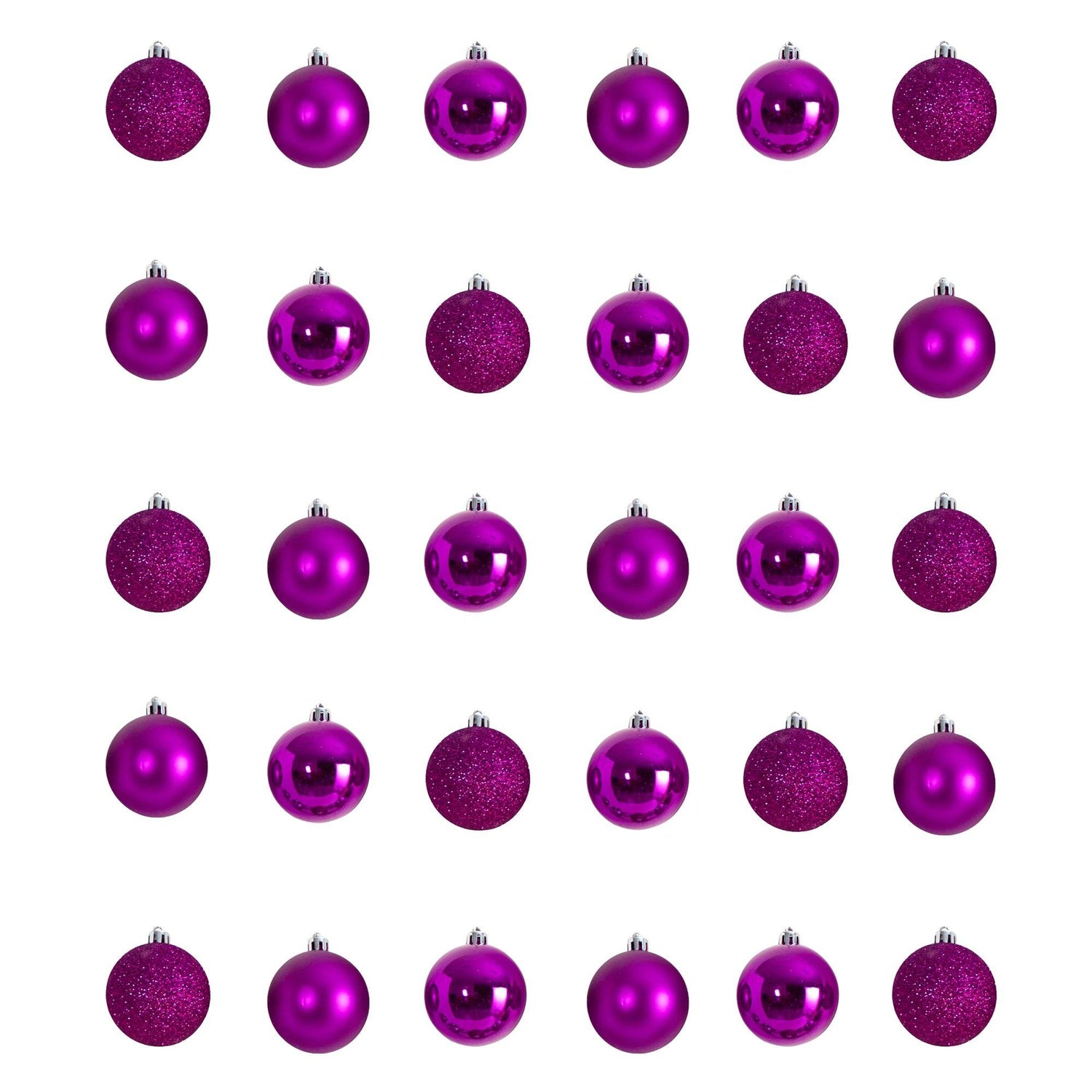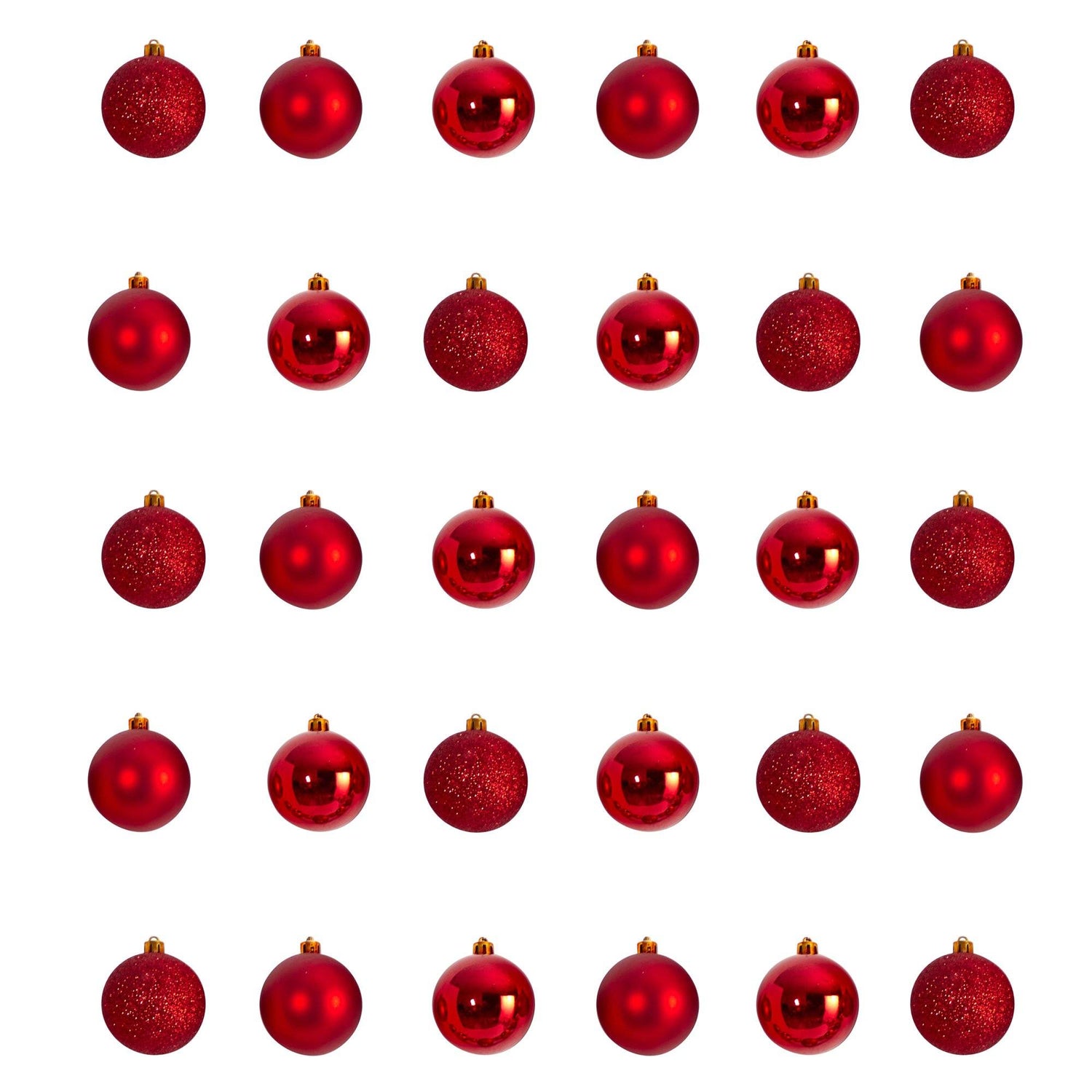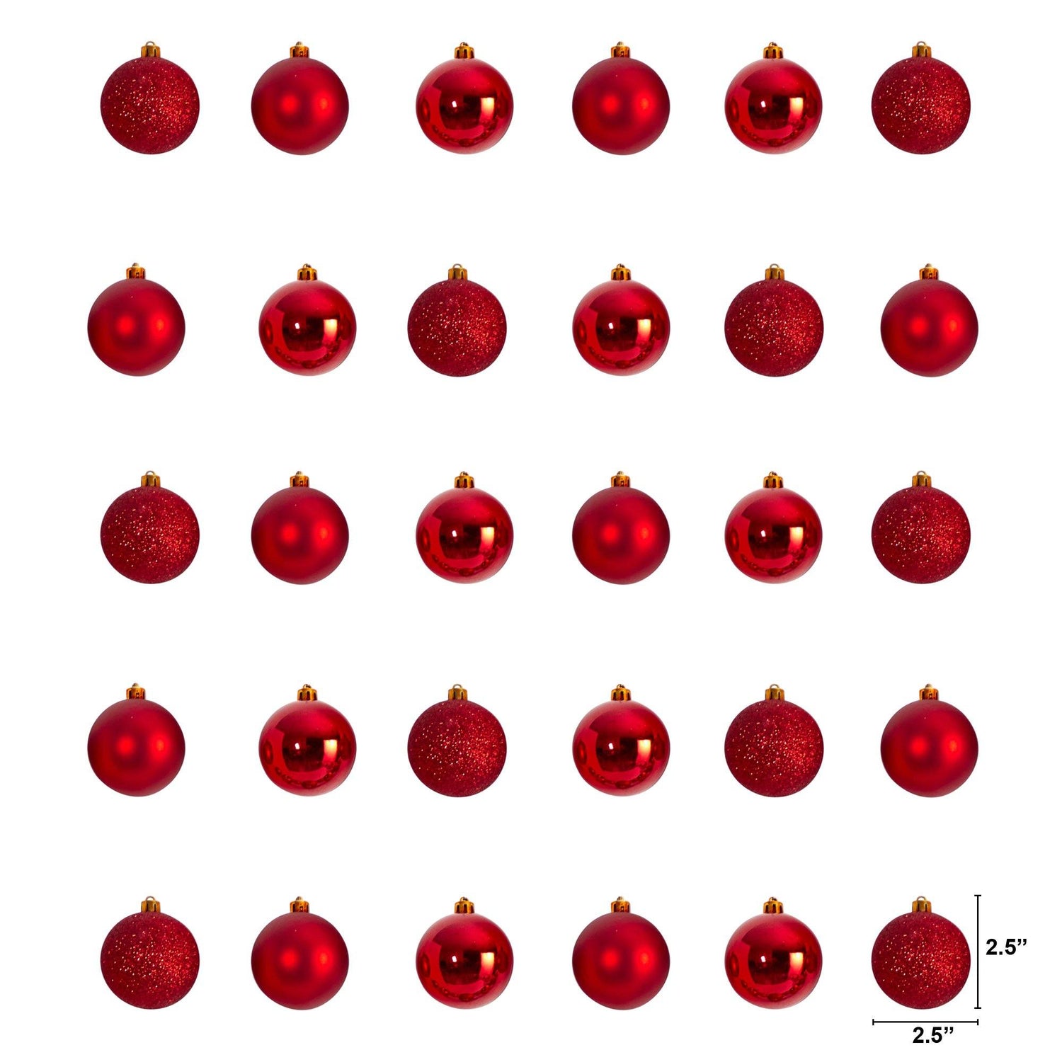 Get into the holly jolly spirit this holiday season with an easy, go-to set of shatterproof Christmas tree ornaments. Perfect for accenting and filling in bare spaces in Christmas trees, this set of 30 holiday-inspired ornaments comes in bright seasonal hues and reflects a glass-like quality - without the fear of damage should they fall or drop. Arriving in a reusable box for continual seasonal use and storage, they’re perfect for mixing and matching with other similar colors and themes at an affordable price.