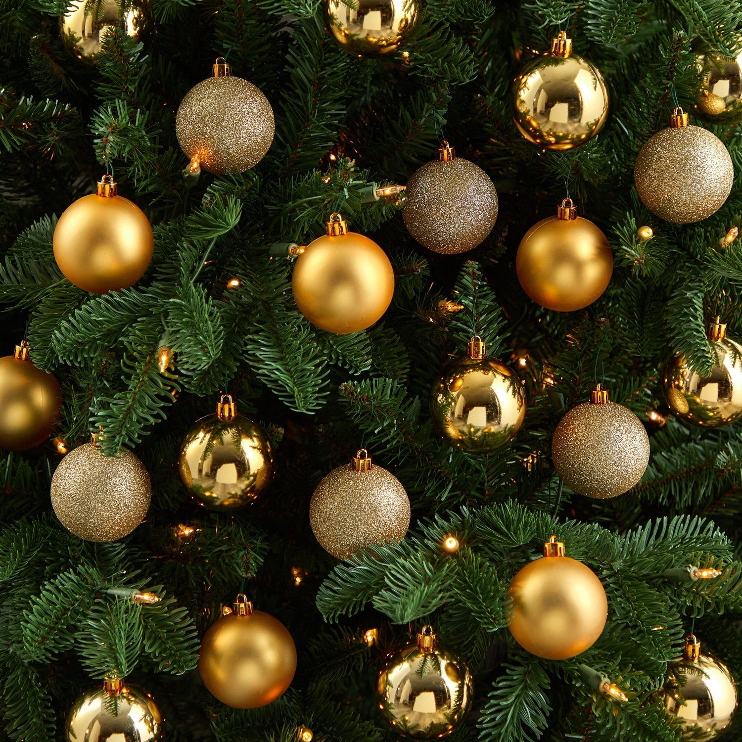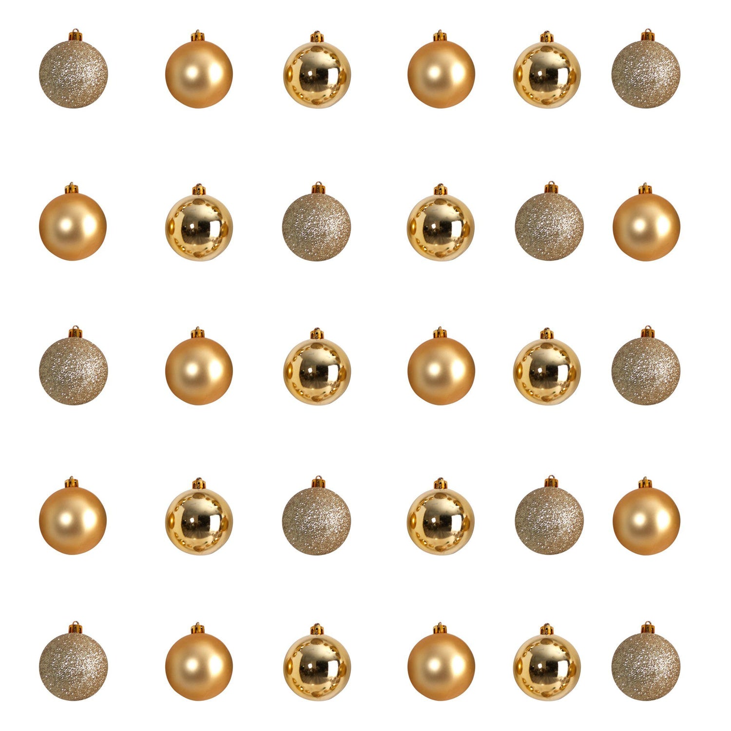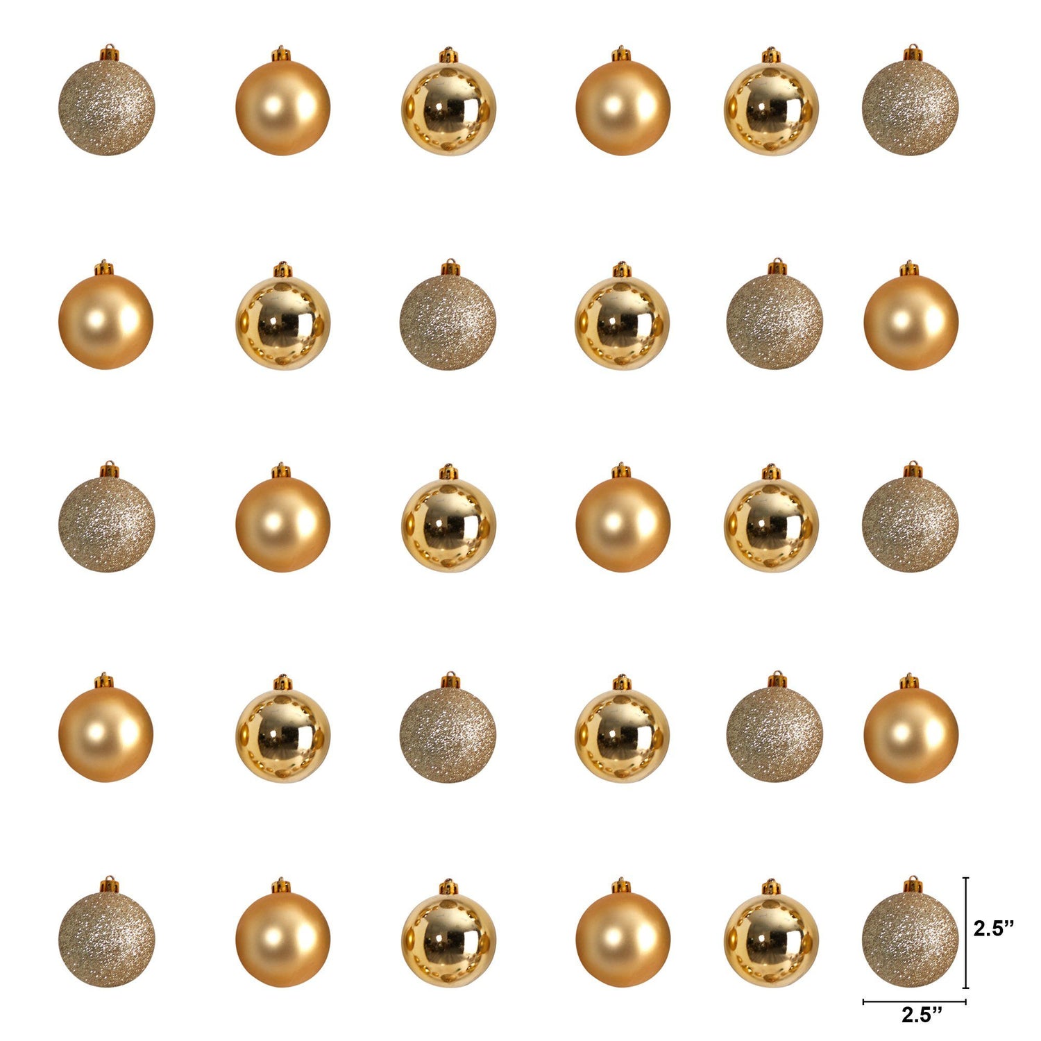 Get into the holly jolly spirit this holiday season with an easy, go-to set of shatterproof Christmas tree ornaments. Perfect for accenting and filling in bare spaces in Christmas trees, this set of 30 holiday-inspired ornaments comes in bright seasonal hues and reflects a glass-like quality - without the fear of damage should they fall or drop. Arriving in a reusable box for continual seasonal use and storage, they’re perfect for mixing and matching with other similar colors and themes at an affordable price.