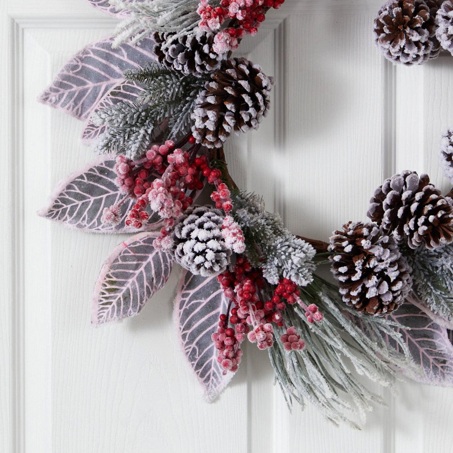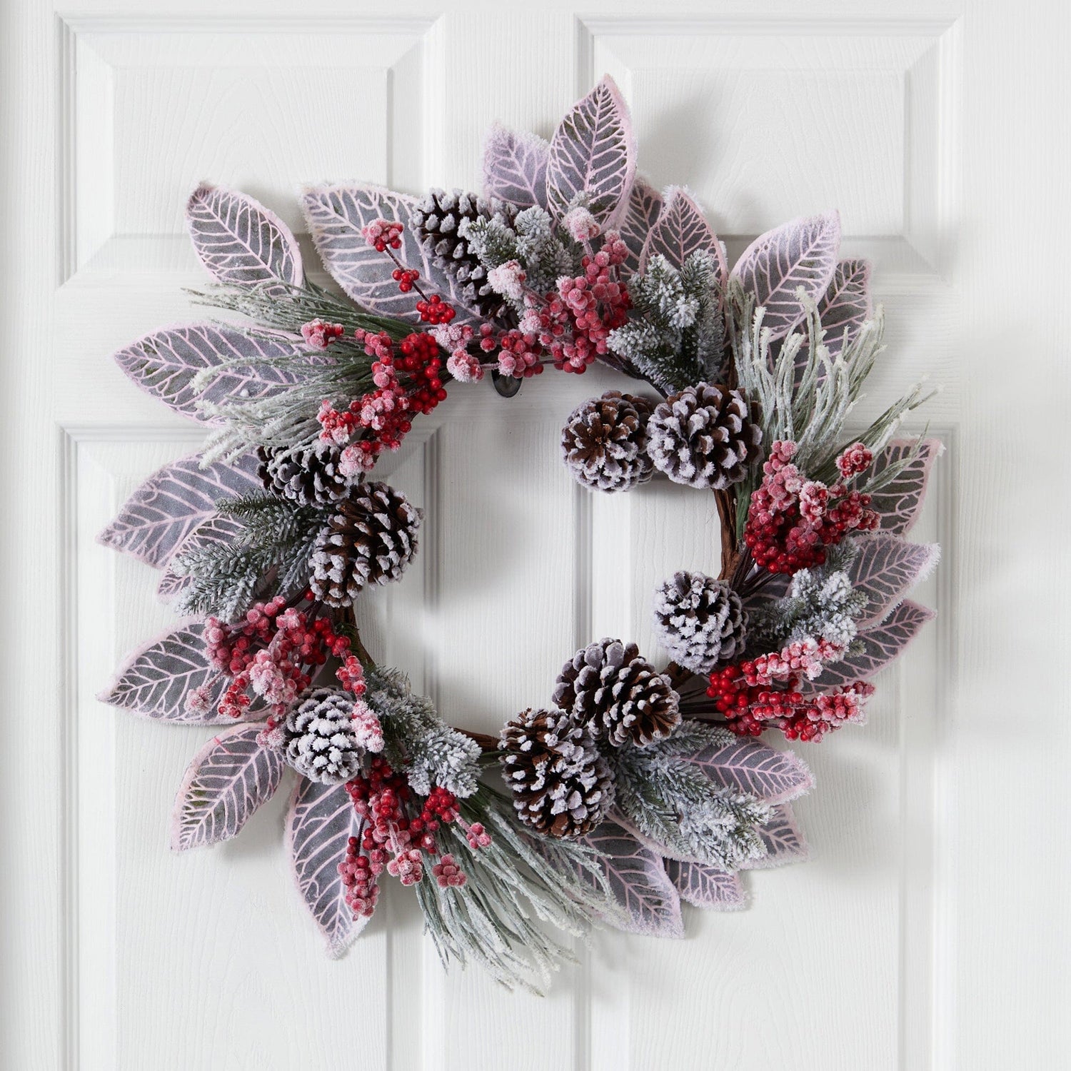 Because of the frosted appearance of this artificial magnolia berry wreath, complemented with vibrant red hues, it will certainly bring the winter feel to your home. Hang this stunning wreath on your interior wall or front door and wrap it with sparkling lights for a cheerful holiday arrangement.
