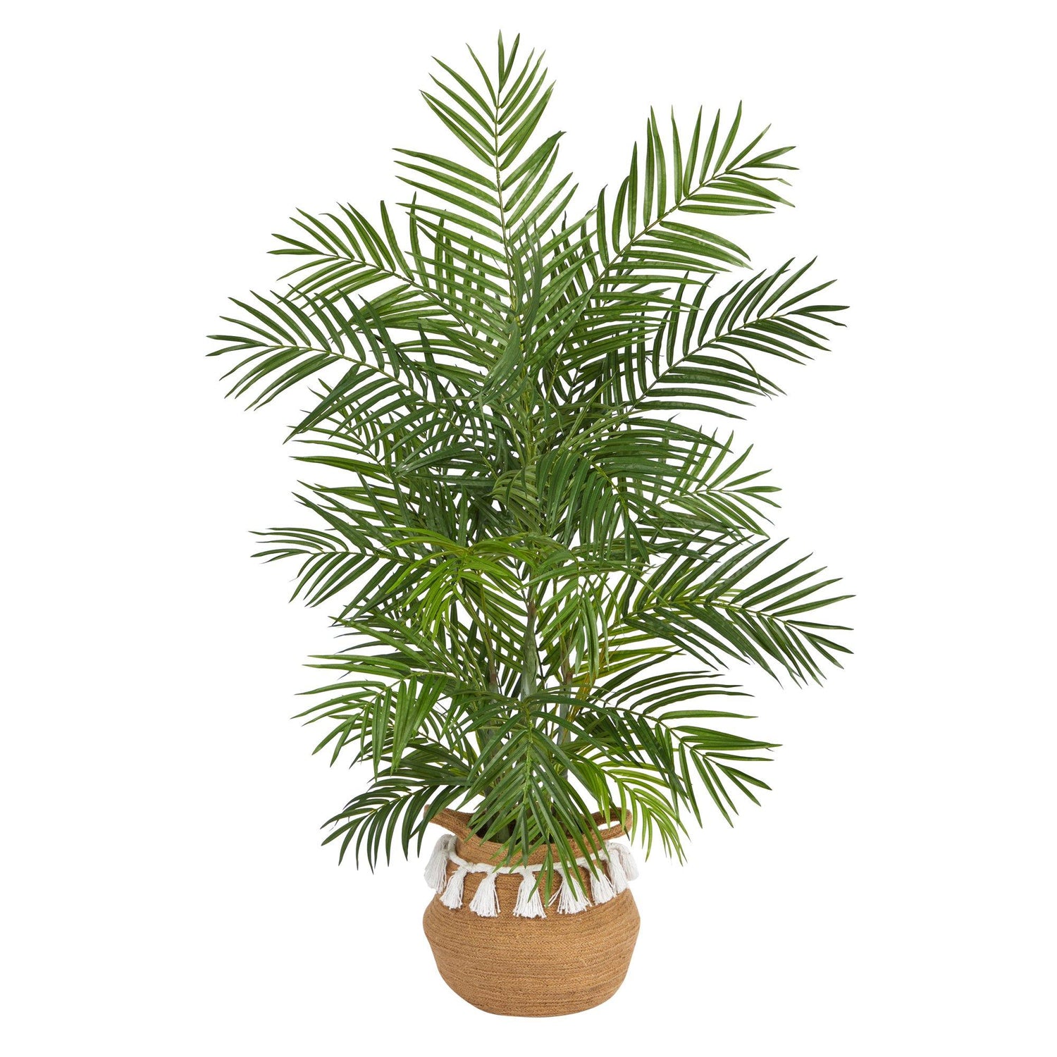 Kick back, relax and stay on vacation mood year-round with this Areca Artificial Palm Tree. Variegated long palm fronds, arch in different directions bringing symmetry and depth to any room. You can even bend them to fit in your space. Standing 4' from a boho chic planter (included in height), curate in any indoor space. Great for a patio, next to furniture or in the foyer.