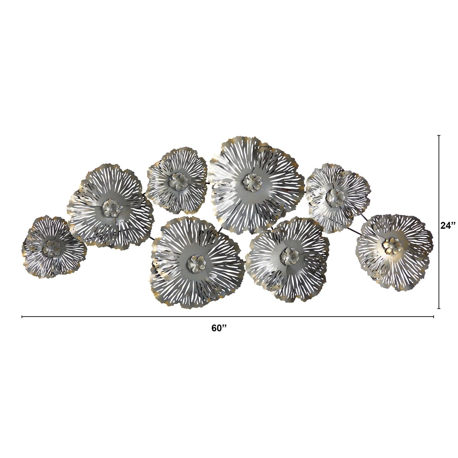 Want some flowers with a modern flair? Look no further than this Modern Floral Wall Art Décor that makes decorating bare walls a breeze. Textured plates are in the shape of a flower and are accented in the middle by brass accents. This artistic piece will complement modern, mid-century modern, or contemporary home decor styles. With dimensions of 5' X 2', hang in any wall that needs some color. Perfect for a dining room wall, living room, or foyer.