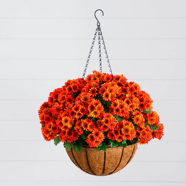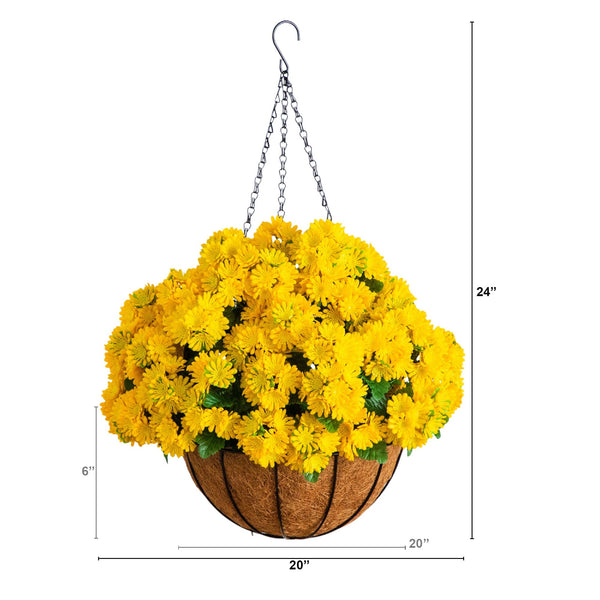 Product: 24" UV Resistant Artificial Chrysanthemum Hanging Basket (Indoor/Outdoor)