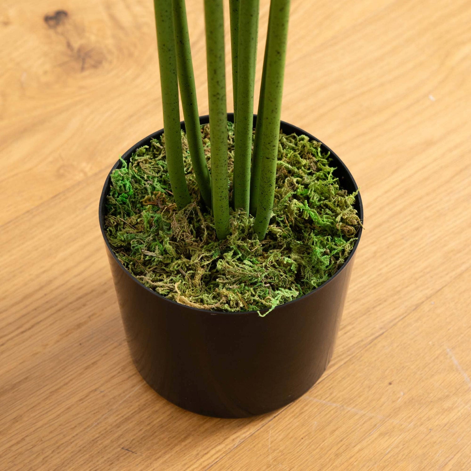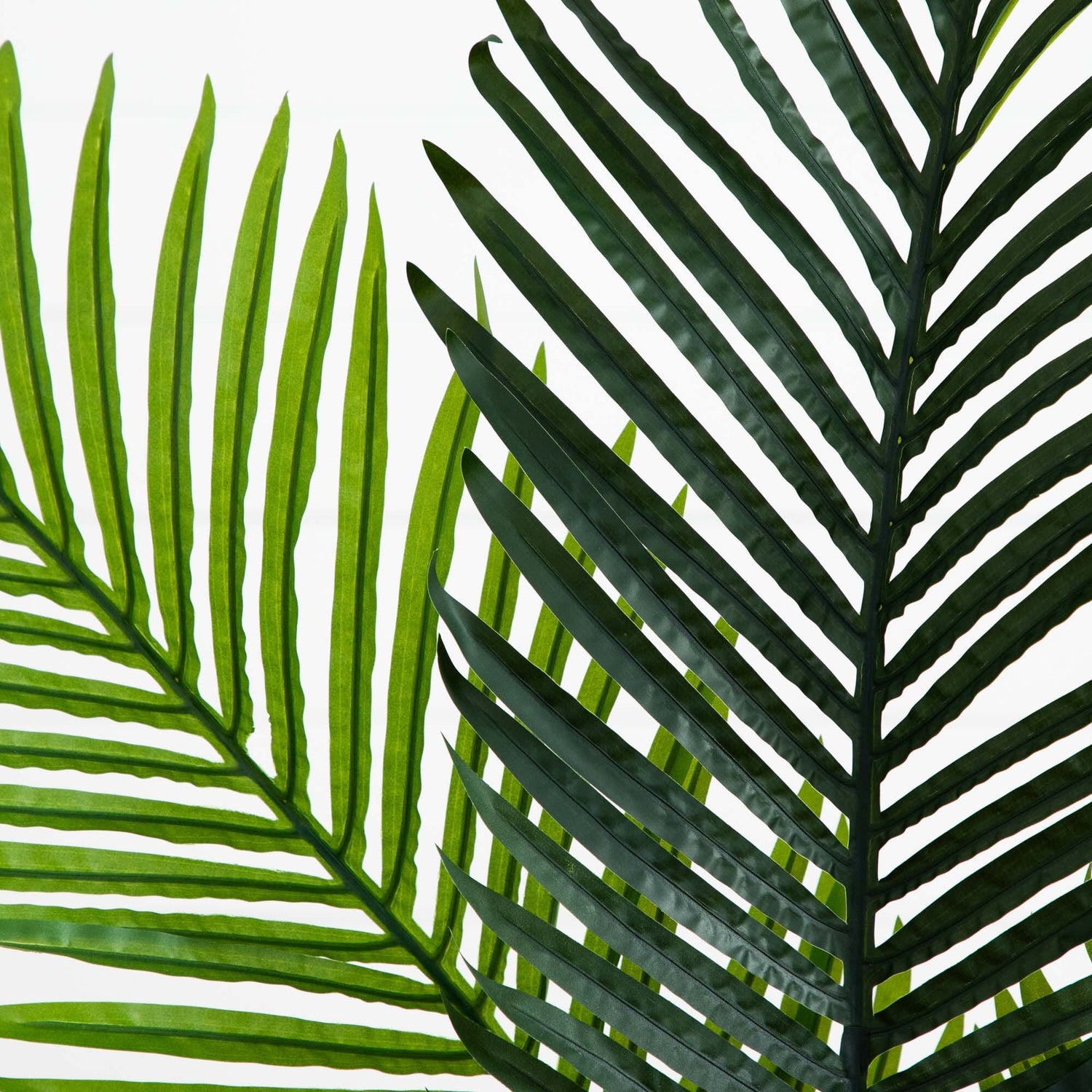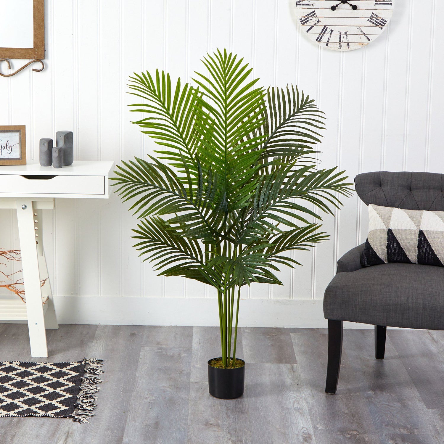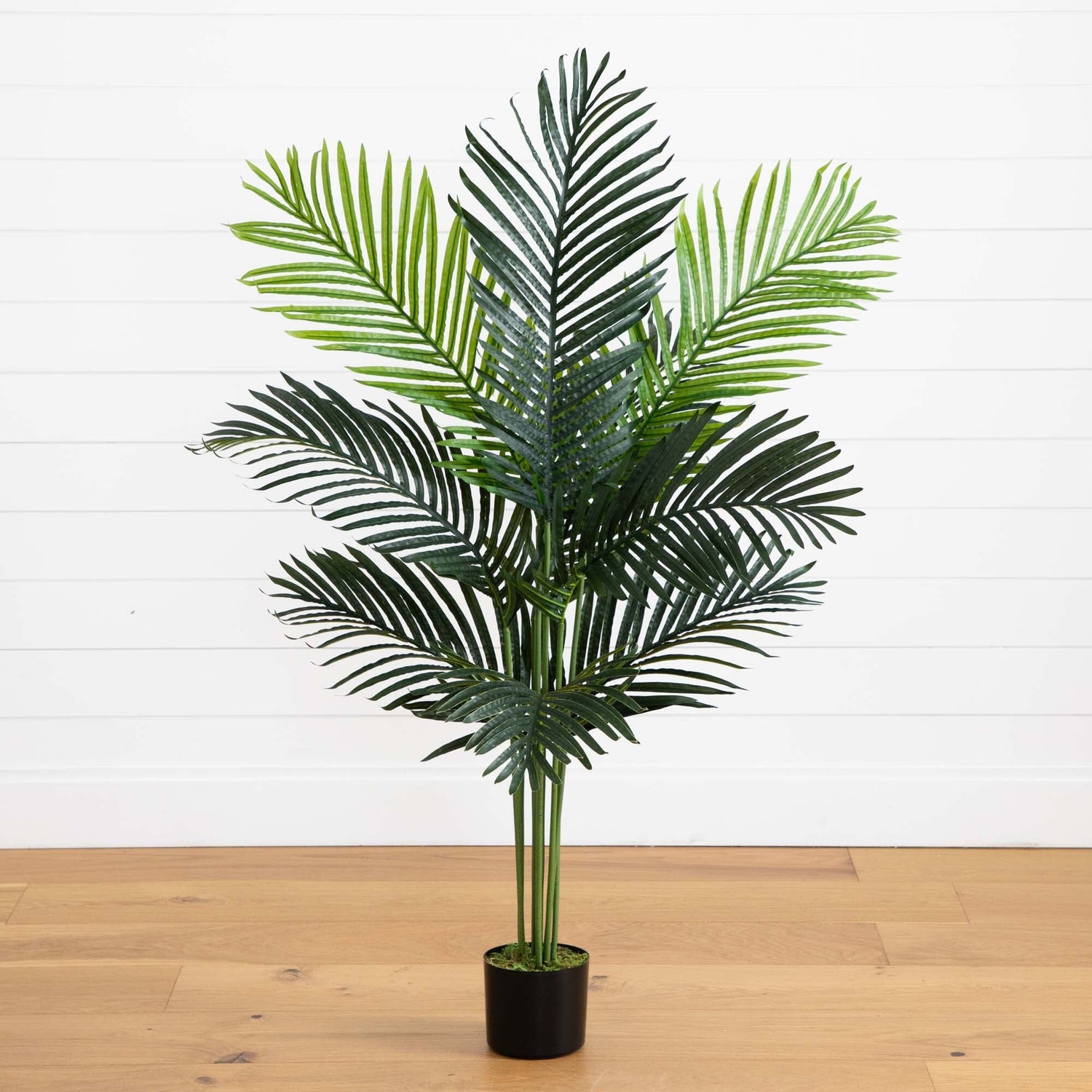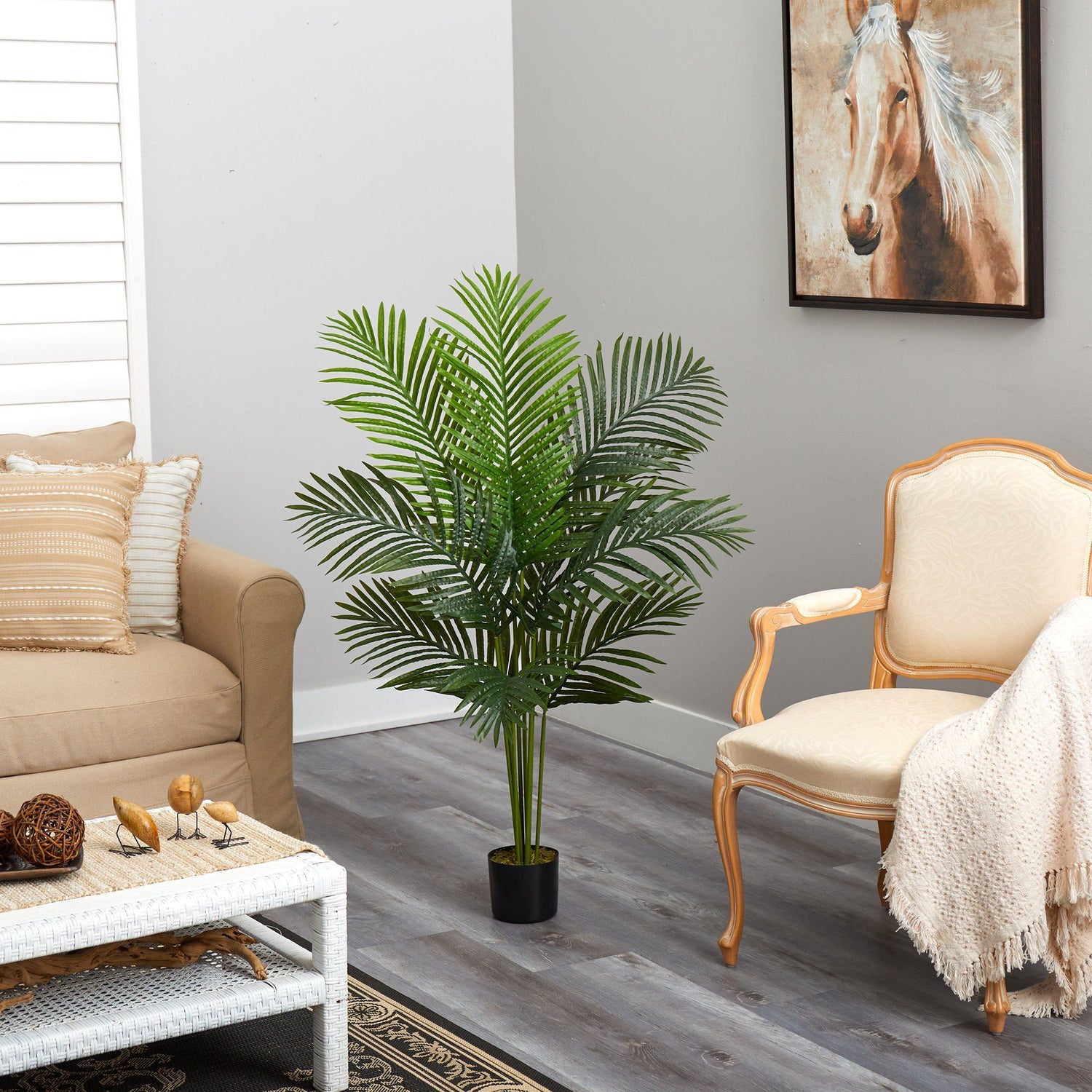 Step into paradise with this Paradise Palm Artificial Tree. The fronds arch in all directions for a cascading relaxing look that'll remind you of your favorite beach vacation. Variegated palm fronds look incredibly lifelike and even move with the wind's sound in synergy as the real ones. Standing 4' from a nursery planter (included in height) house in any space that needs a tropical look. Ideal for awkward corners, apartments, and foyers.