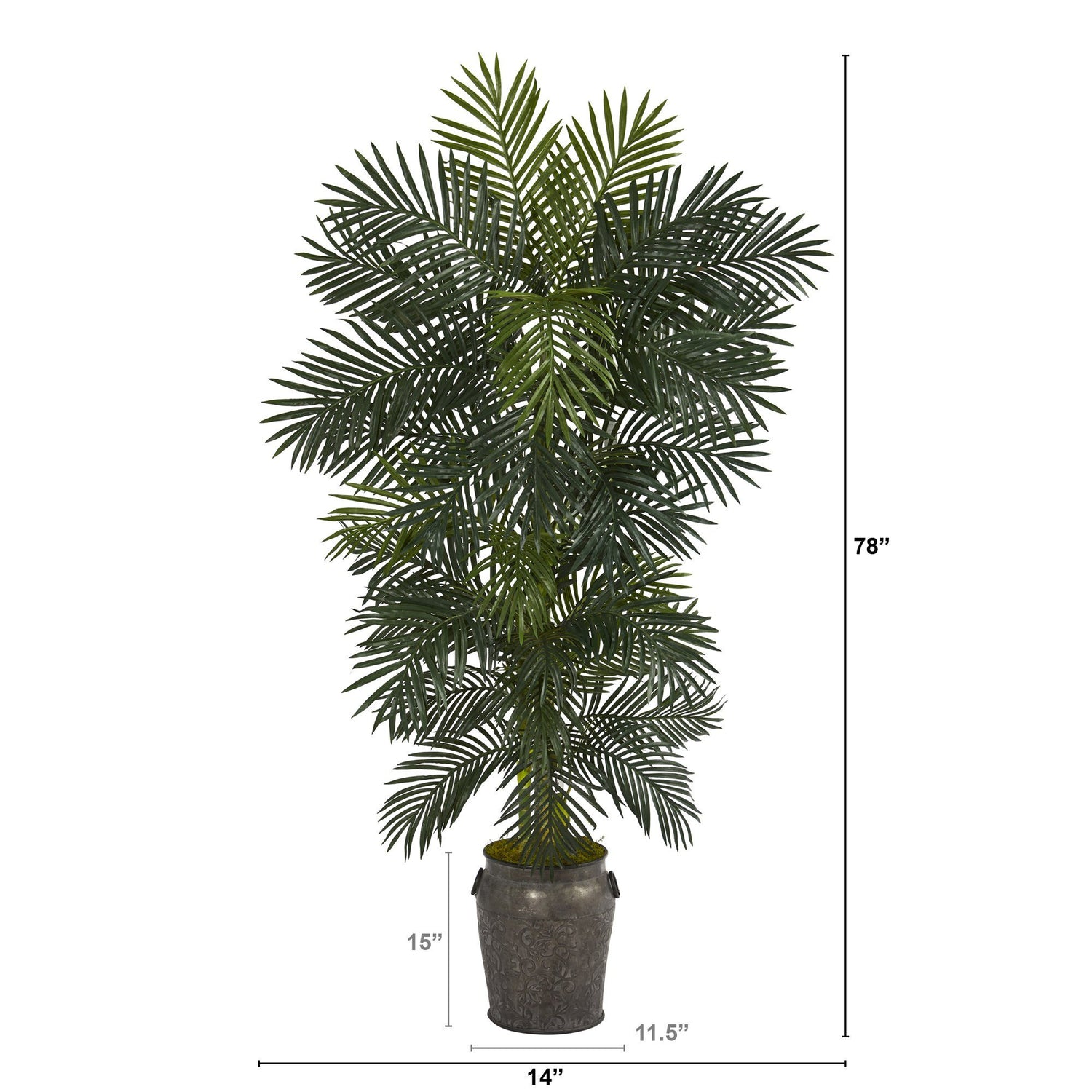Spruce up bare corners with the help of tropical foliage provided by this artificial golden cane tree; boasting countless tiers of realistic greenery designed with the finest materials to showcase a lifelike quality. Standing 6.5’ high from a metal planter, this incredibly realistic fake tree would easily install a sense of life to empty spaces.