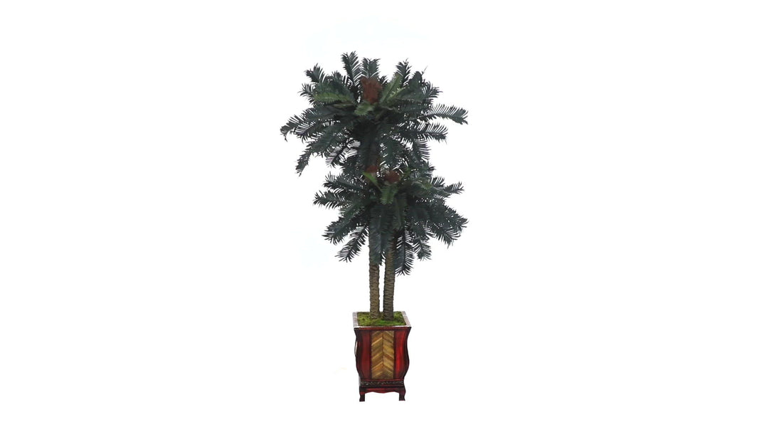 With lush foliage and two textured trunks rising out of a bed of natural moss, this artificial double sago palm tree is not only easy on the eyes, but realistic to the touch. With a neutral-colored and four-footed planter, this 6-foot artificial double sago palm tree would be best displayed somewhere open, like next to a couch or in an entry.