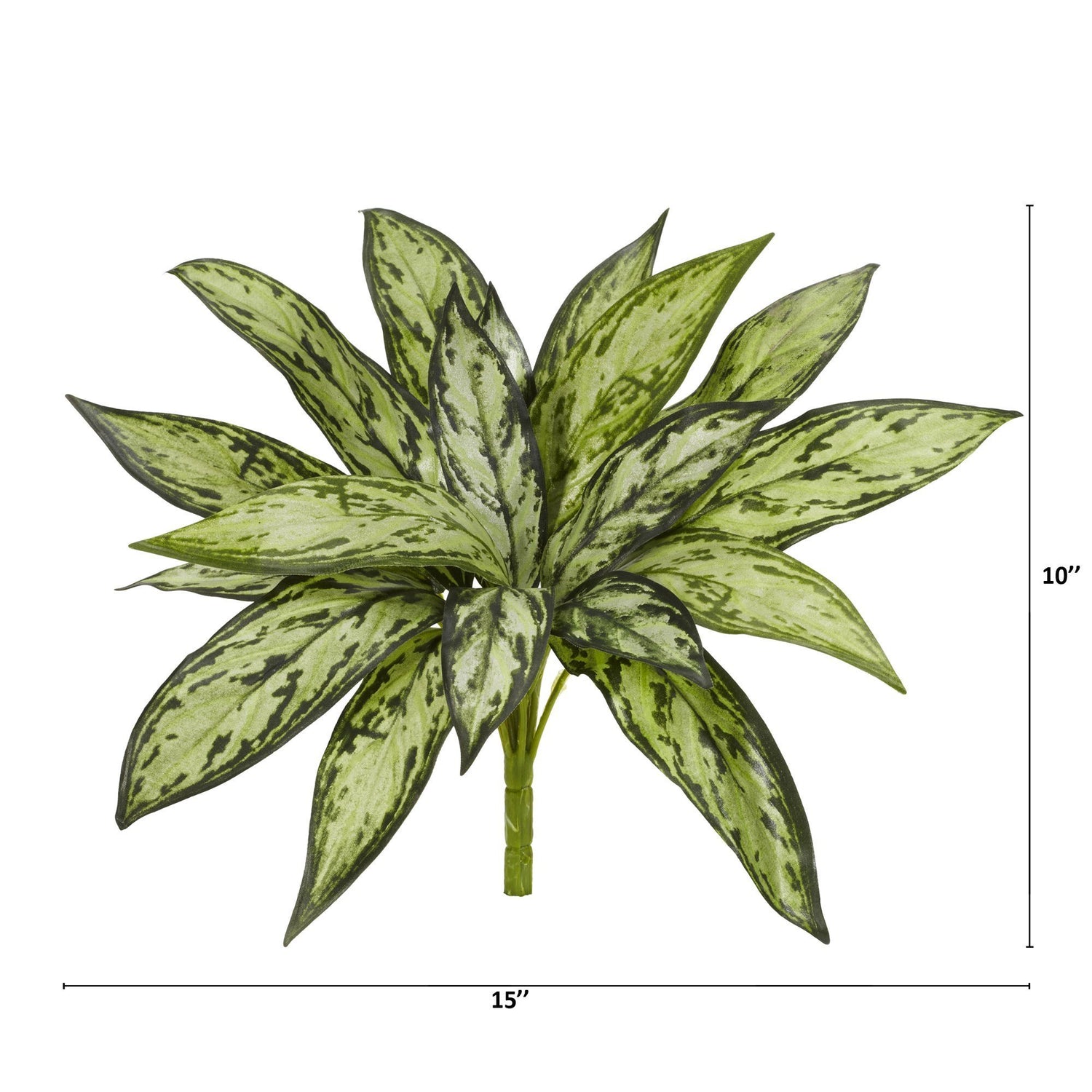 Greenify all parts of your home or office with this set of artificial silver queen stems, each showcasing variegated greens leaves that naturally splay outwards with lifelike precision. Rich in color and lush in foliage. Arrives in a set of six, each of these loose stems reach 10” tall, making for effortless display options.