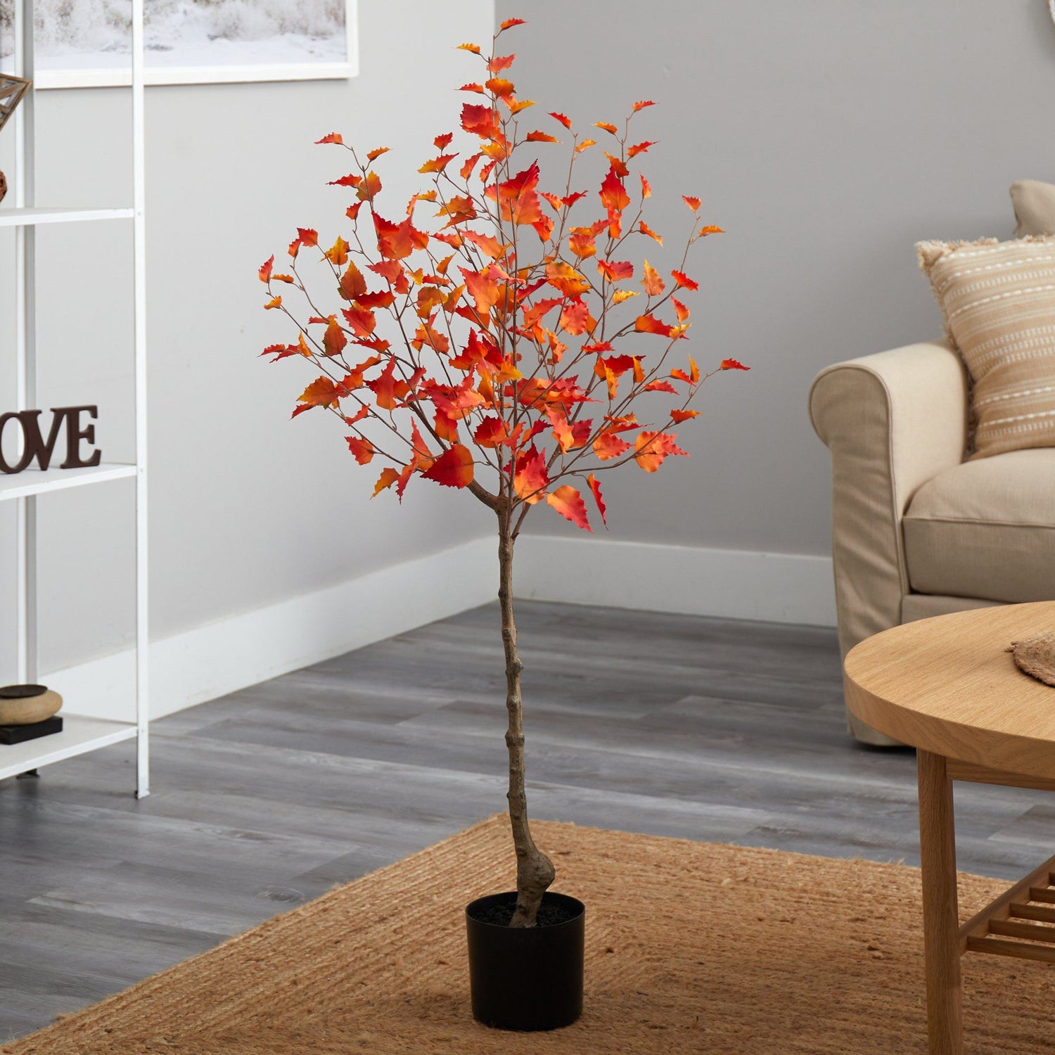 Remind yourself of the most spectacular foliage in the world with this Birch Artificial Tree. Inspired by the Northeast's landscape, bring the fall foliage home by injecting vivid colors in your space with these lifelike birch leaves. Standing 4' from a nursery planter (included in height), house in any compact area. Perfect for Thanksgiving, living rooms or a fall-inspired room.