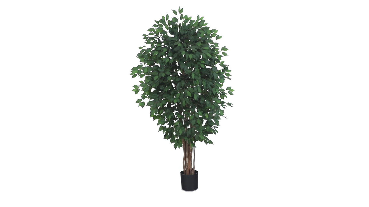 With smooth leaves making up a full, rich splay of leaves, this ficus artificial tree is a great way to feel like you've stepped outdoors. Several trunks rise up and spread out adding to the realistic feel that you'll get when you place this 5.5-foot piece in your home. It would be great behind an armchair or next to a bookcase.