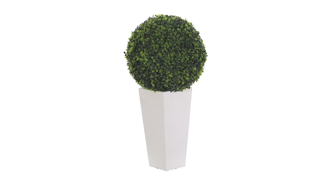 The boxwood topiary is skilled and cut to perfection. If you are one to appreciate good art, then add this eye-catching artificial plant to your home arrangement. It comes in an elegant white tower to complete the crisp look.