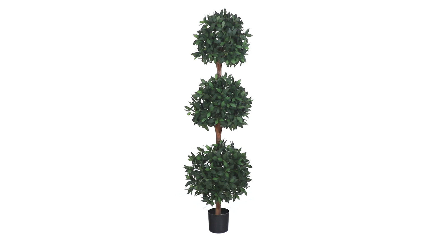 Ball topiaries are always very popular, whether they have one, two, or even more balls. This particular Sweet Bay Topiary has three distinct "balls of bloom", and looks as if a gardening expert shaped it by hand. It stands more than six feet in height, and makes a handsome addition to any home or office décor. As a bonus, it'll stay looking perfect for years, with nary a drop of water or a minute of care.