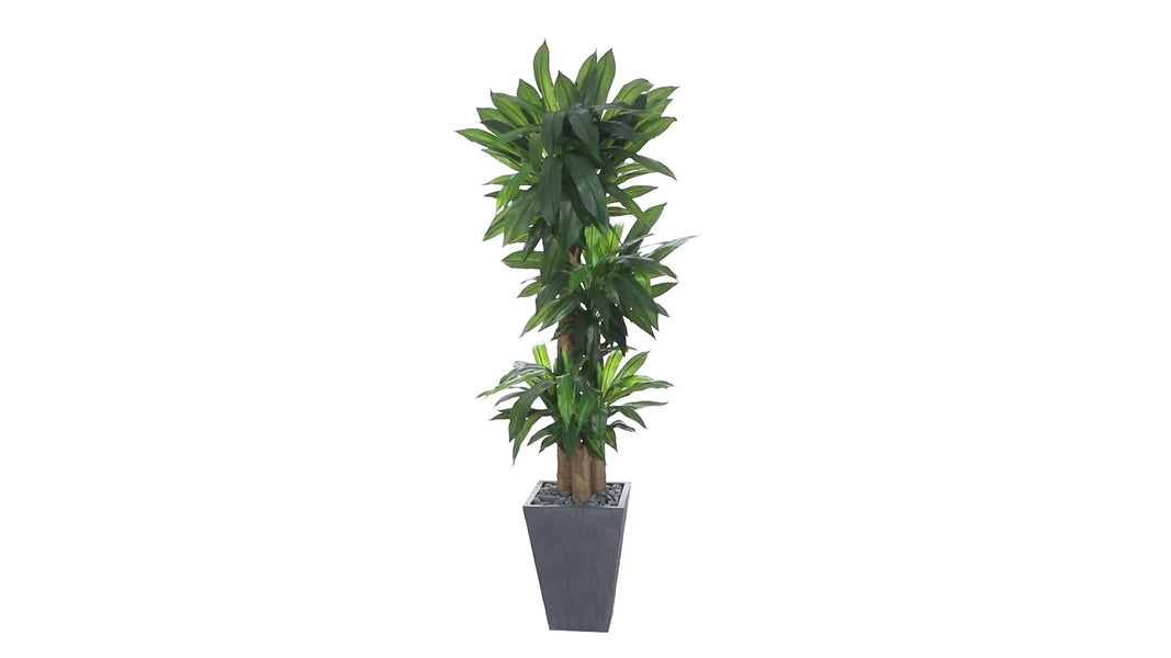 The slender stalks with lifelike spears of green leaves extend upwards from the included slate planter. The cornstalk artificial dracaena is realistic and maintenance-free, making it perfect for an office. Take advantage of its compact shape to add an accent in a tight space near your desk.