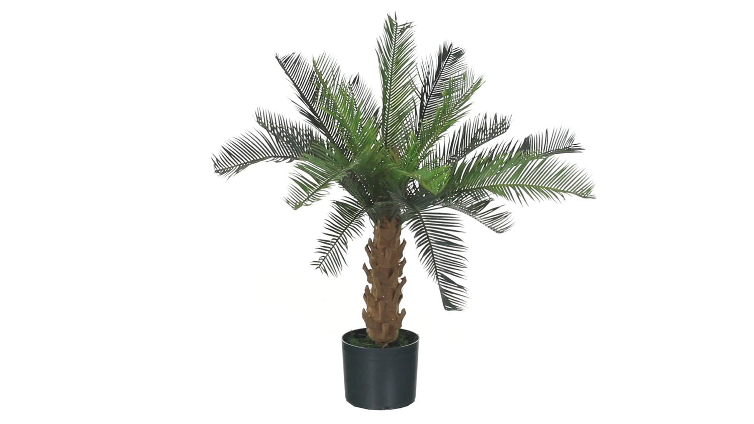Kitchy and fun, this Plastic Cycas Tree stands 28 inches high with a brown foam trunk fanning out in the traditional cut patterns. Since it’s foam, you never fear touching it! 16 long leaves cascade out in an overflowing pattern while the long tapered edges provide interesting patterns to draw attention. Stands in a six inch high pot to complete the arrangement.
