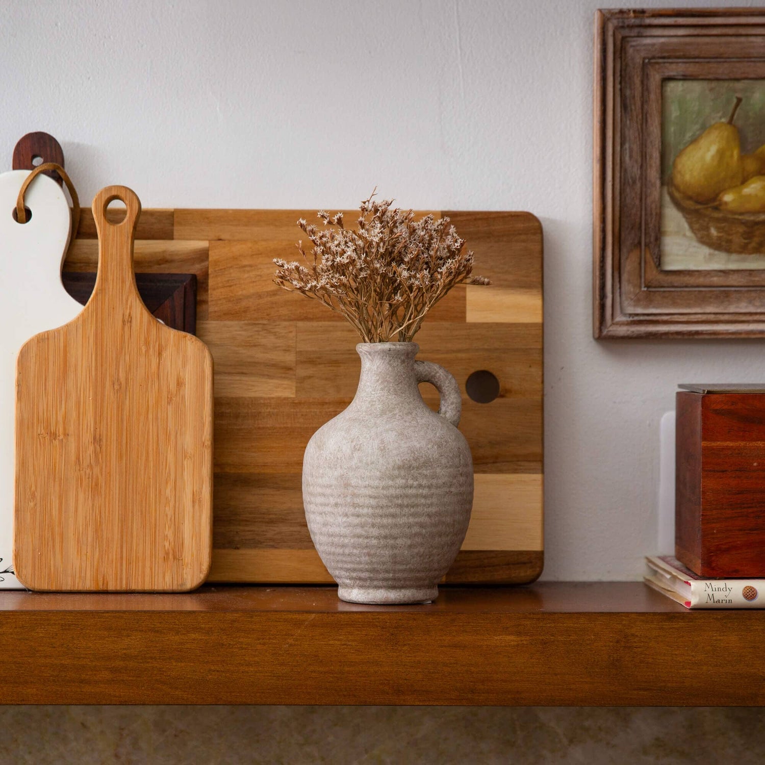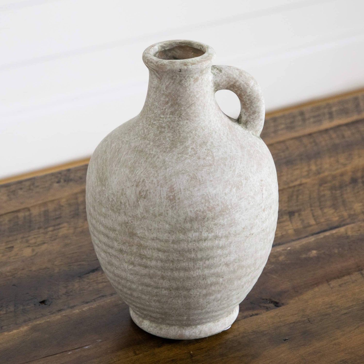 Our textured natural ceramic jug with a handle is the perfect way to embrace a minimalist approach to your home decor. Whether you add an artificial floral stem or a green branch for a simple yet striking touch, or leave it as a standalone statement piece, this jug adds effortless elegance to any space. At 7-In tall, it’s the perfect complement to your minimalist, contemporary style. Design tip: style on a bookshelf or compliment with another jug for a spring tablescape.
