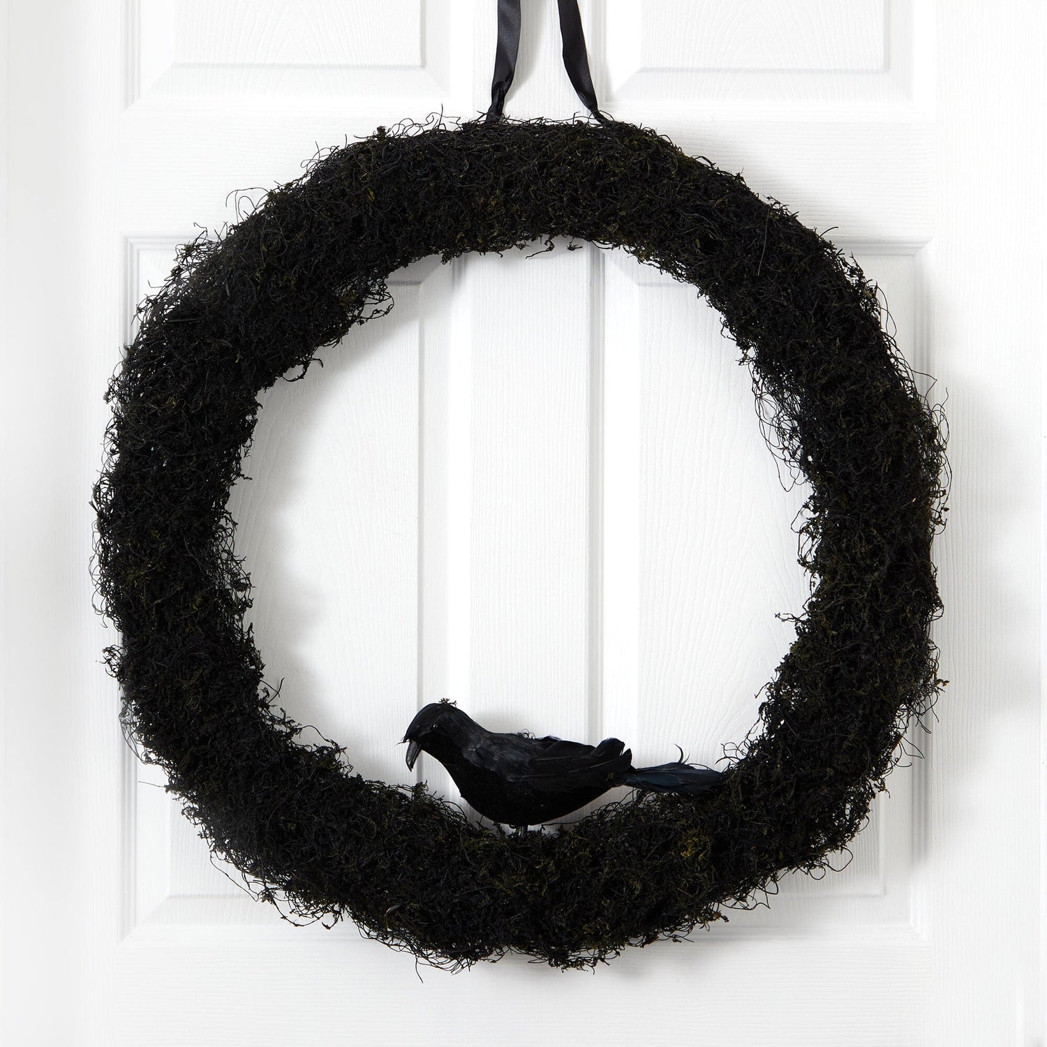 Are you looking to get spooky this Halloween? Wish to scare all the ghosts? This raven inspired black wreath, will add a festive, yet sleek touch to any room. Like a costume, dress any area of your home by darkening spaces in need of a little scary touch. With a diameter of 30" house in any area that needs a festive touch.