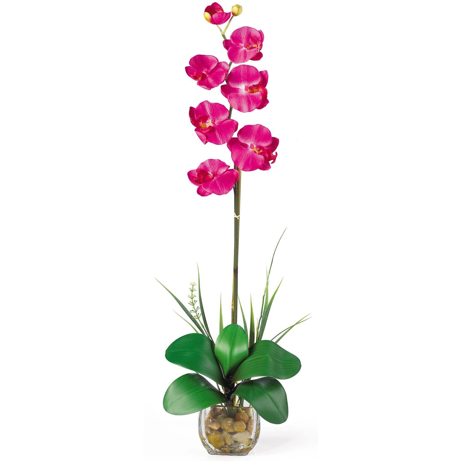 Check out this stunning phalaenopsis orchid! Bursting with color and personality the Phalaenopsis is perhaps the most popular variety of all the orchids. Expertly arranged, this piece was designed to enhance any space. It comes in 8 outstanding colors: Beauty, cream, dark pink, green, gold, mauve, orchid, and white. Standing 27” tall, each plant comes with one amazing phalaenopsis stem that has 6 flowers and 2 buds. Finished with river rocks, leaves, artificial water and a classic glass vase this item is not to be missed.