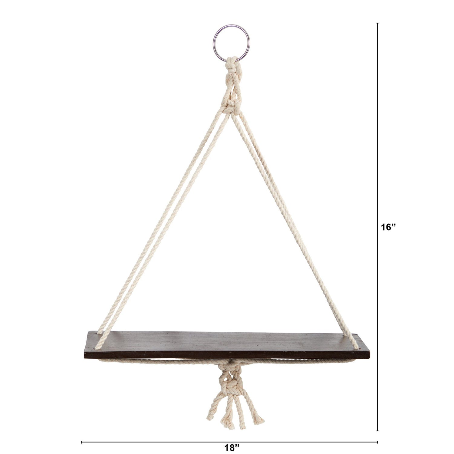 Craving something a bit different? Hang your plants in this wall hanging wooden shelf that is just the right size for a mini plant or another small item. Handcrafted by artisans, the hanging wooden frame has boho vibes with neutral colors. With dimensions of 16" X 18" easily hang in any space— Ideal for a living room, bedroom, or bathroom.