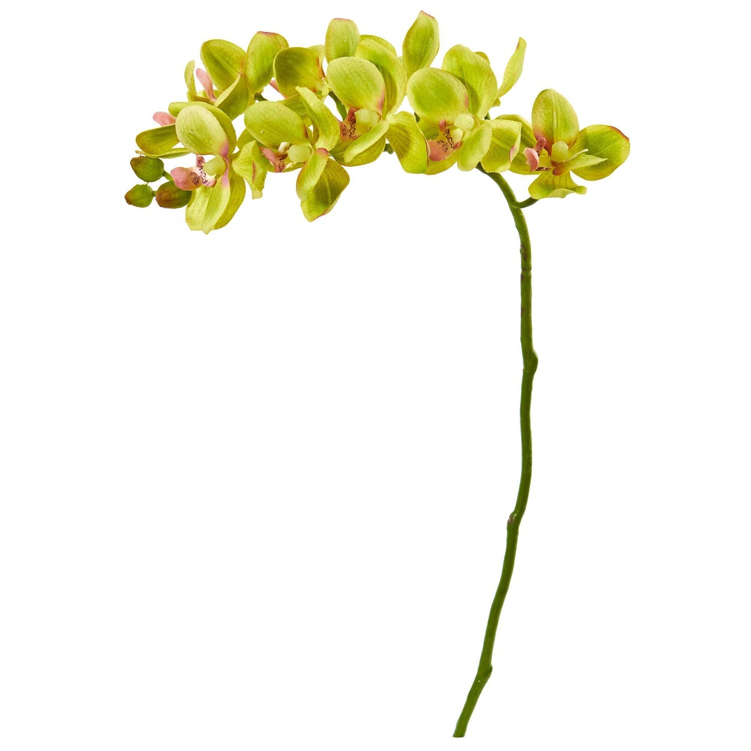 Elevate your wedding decor with this set of six artificial phalaenopsis orchid stems. Reaching 21” long, each stems features a collection of delicately designed flowers in bold, natural hues. Great for arranging with other artificial flowers, they can be reused time after time.
