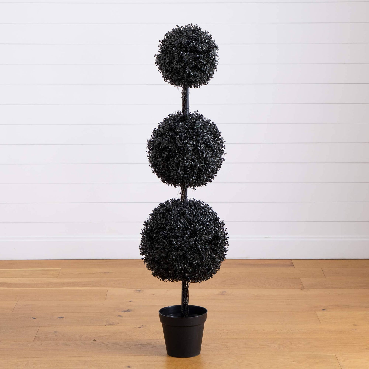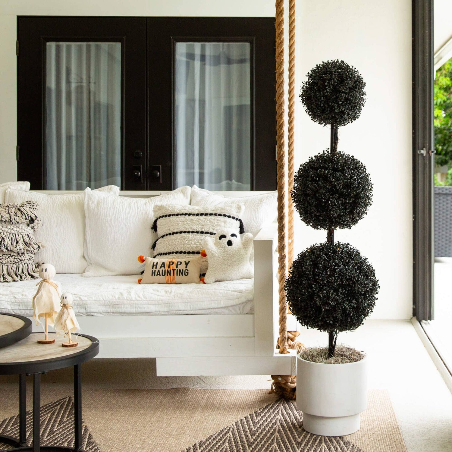 For when you want a touch of Halloween but also want to keep it classy, the black artificial triple ball boxwood topiary is the answer. Inspired by the grand gardens you know and love, this piece is for when you seek a traditional, European-inspired outdoor space but also feel a little festive. Crafted from high-quality materials, this faux tree is UV-resistant safe for indoor and outdoor use, place under a covered patio and watch it shine. Standing 5-Ft from a nursery pot, DIY and add your own personal touches. Great for an elevated, yet moody take on the holidays.