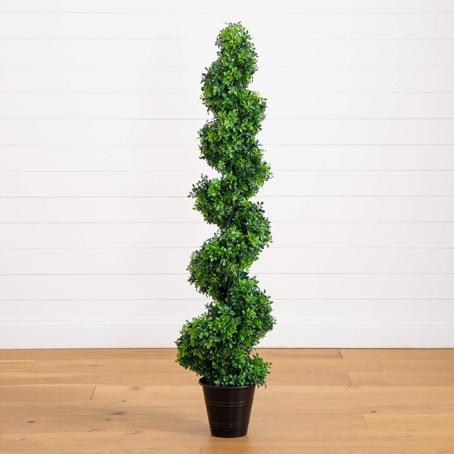 Product: 5' UV Resistant Boxwood Spiral Topiary Artificial Tree in Decorative Planter (Indoor/Outdoor)