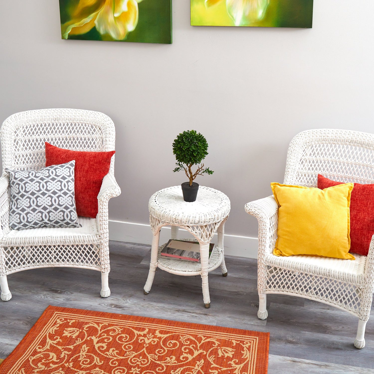 Add some natural greenery to both indoor and outdoor spaces with the help of this artificial topiary tree; boasting a densely packed canopy of realistic looking boxwood foliage that is specifically designed with UV Resistance to protect it from damage from the natural elements. Standing 15” tall from an accompanying nursery planter, this fake topiary tree eliminates any need for maintenance, wherever displayed.
