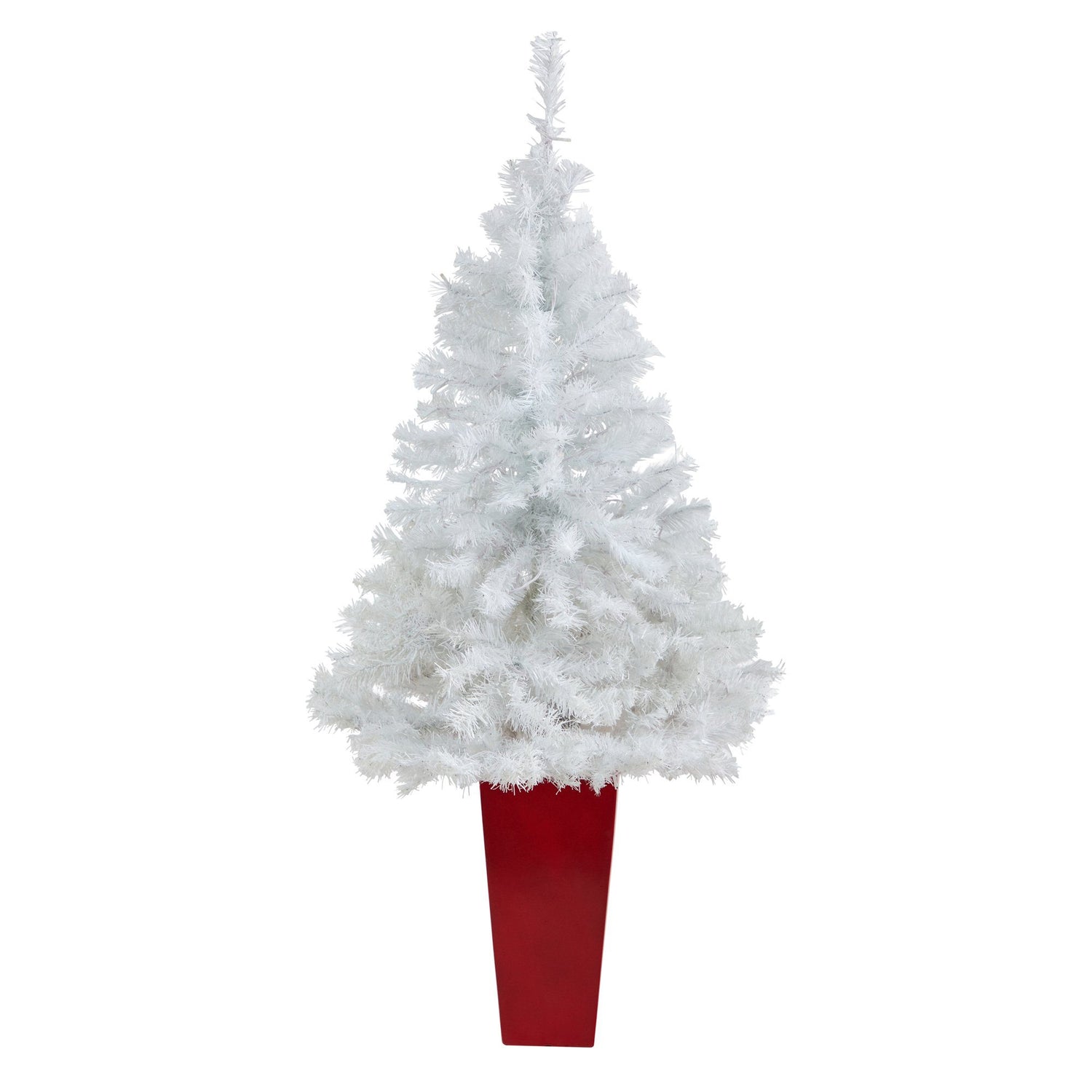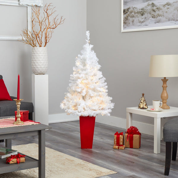 Create your own mini Christmas wonderland and rock around this North Carolina Artificial Christmas Tree. Incredibly lifelike textured branches mimic real evergreens for a sturdy construction. This pre-lit artificial Christmas tree comes with 100 clear LED lights and has 545 upward-sloping branches – allowing you to decorate with mini-ornaments of your choice easily. Standing 4.5' from a red planter, this tree requires zero maintenance, just some fluffing, and shaping that’s easy with the bendable branches! Decorate as a trio with other trees or in your kids’ room, kitchen, apartment or other compact spaces.