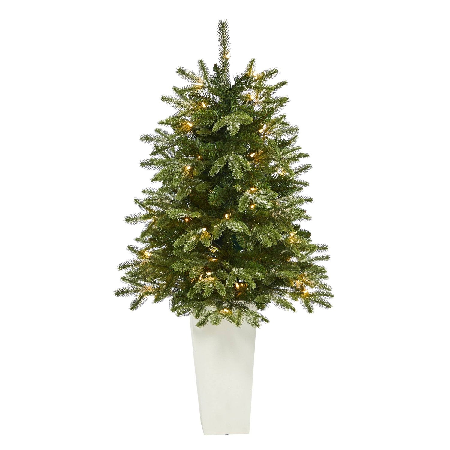 Evoke hints of a winter wonderland this holiday season with the help of this snowed Grand Teton Fir Artificial Christmas Tree! Completely maintenance-free, this winter-inspired fake Christmas tree boasts a robust silhouette of snow-dusted foliage made up of 111 easy-to-bend branch tips that can showcase your holiday ornaments and pre-lit with 50 clear lights. Carefully stabilized on a red planter, this versatile 44" tall snowy artificial Christmas tree will not only make holiday decorating a breeze but ensure your home is always holiday-dressed for years to come.