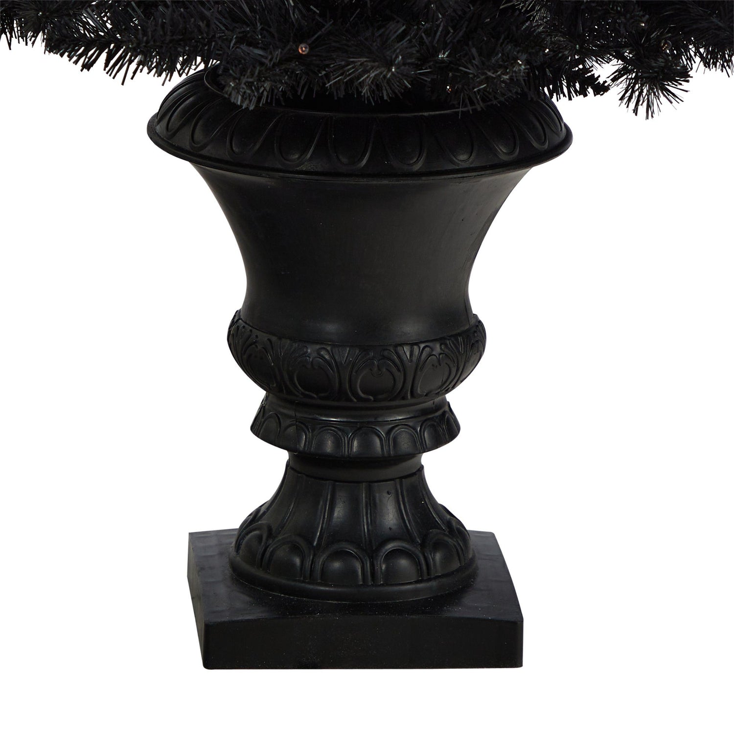 Happy Halloween! Invite the ghosts, goblins, and everything in between with this Black Halloween Artificial Christmas Tree. Be extra scary and mysterious, with black needles, displaying a full silhouette. Crafted from high-quality materials and accented by 100 orange LED lights, this faux Halloween Christmas tree will be the center of attention during holiday parties. Standing 4', from an urn (included in height), add your favorite scary ornaments. Perfect for a Halloween party in any setting.