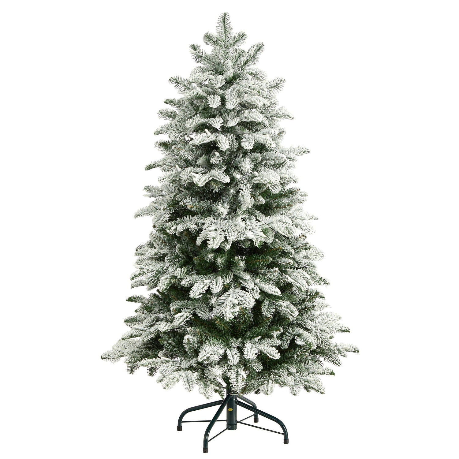 Create a winter-inspired Christmas scene without the hassle of upkeep or maintenance with the help of this flocked artificial Christmas tree. Perfect for tight, narrow spaces because of its slim silhouette, it boasts evergreen foliage made up of 779 easy-to-bend branch tips for showcasing your favorite holiday ornaments- all fully flocked with faux snow to create a Pinteresque Christmas. Arriving pre-strung with 250 warm white lights to eliminate tangles and carefully stabilized on a metal stand, this flocked 4’ tall artificial Christmas tree will not only make decorating a breeze but ensure your home is holiday-ready for years to come.