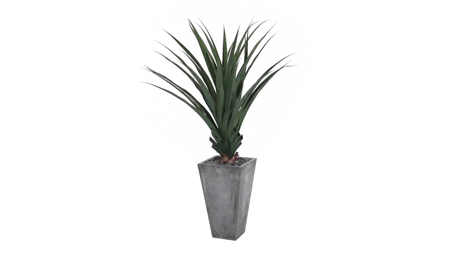 Bring the beautiful austerity of the desert to your home or yard with this faux spiked agave in a planter. The modern tapered cement colored planter has weight to prevent tips and style to draw the eye. The dramatic upsweep of the spiked agave is quite the attention-getter.
