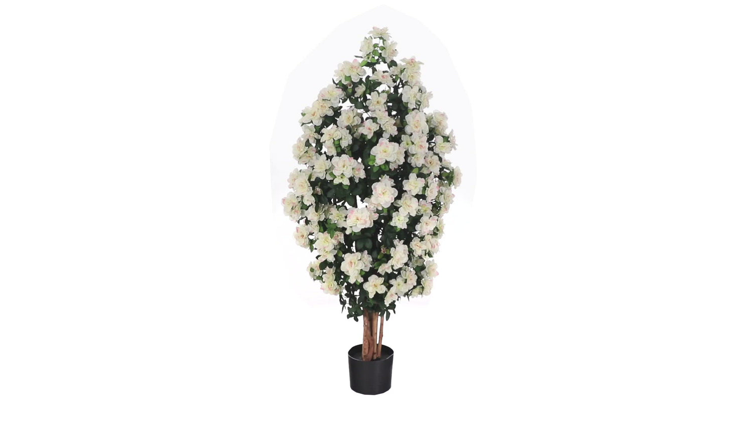 This eye-pleasing azalea artificial tree will make a bright addition to any room. It features abundant green leaves and fresh white blossoms that nearly cover its brown stalks. Standing at 57 inches, this tree will look great on either side of your bedroom's vanity or dresser. You can also position this in your formal dining room in a corner just under a wall-mounted sculpture or clock for a classic look.