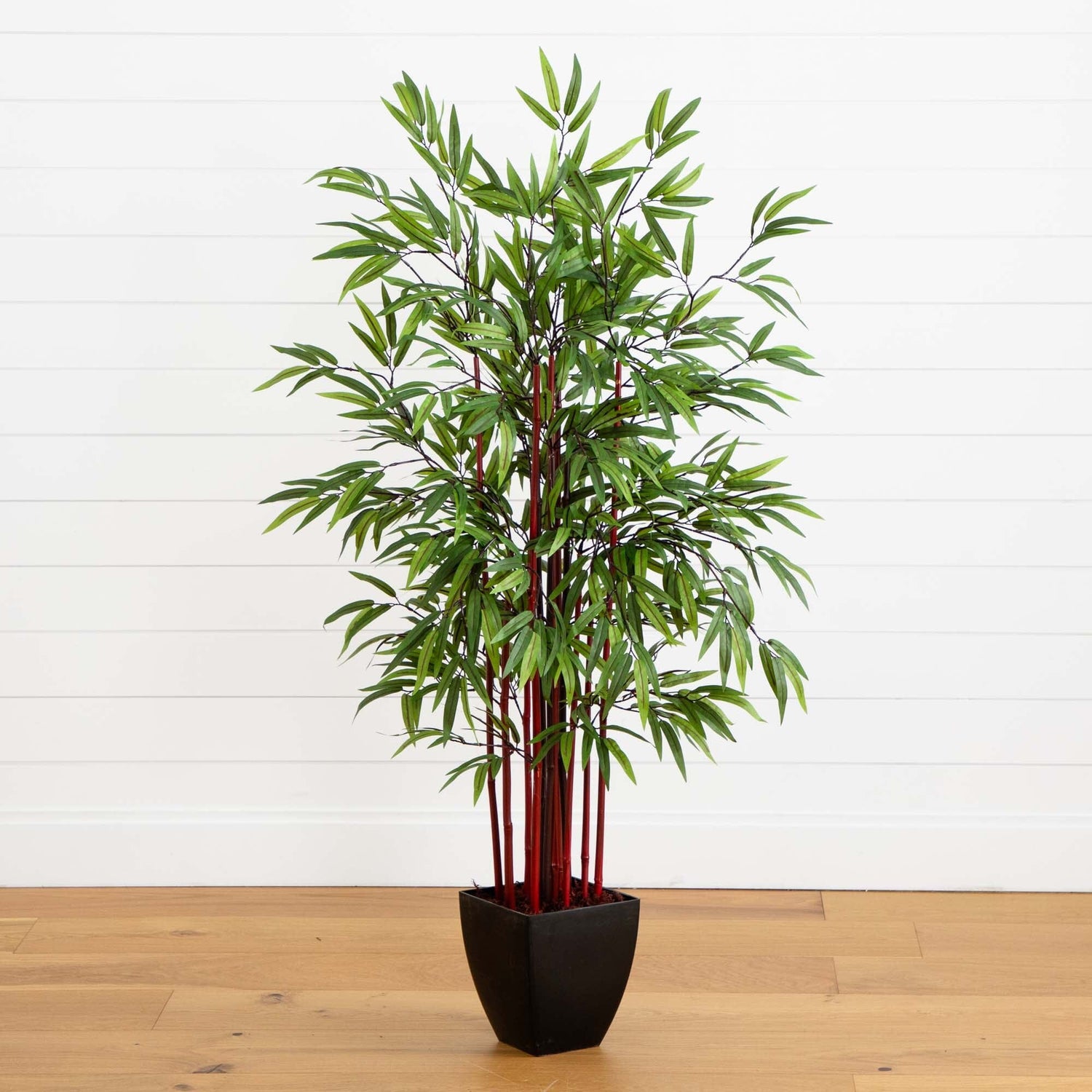 Get a little taste of the Orient with this lovely bamboo tree. Standing at a stout 5 feet tall, this collection of bamboo shoots and leaves will give one a feeling of whimsy and reflection (perfect for enjoying a cup of tea!)This piece comes with a decorative planter that is simple, yet elegant, much like the bamboo itself. It’s a great piece for either home or work, and also makes a unique gift.